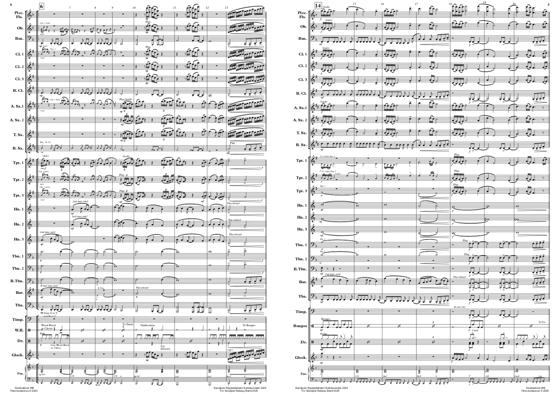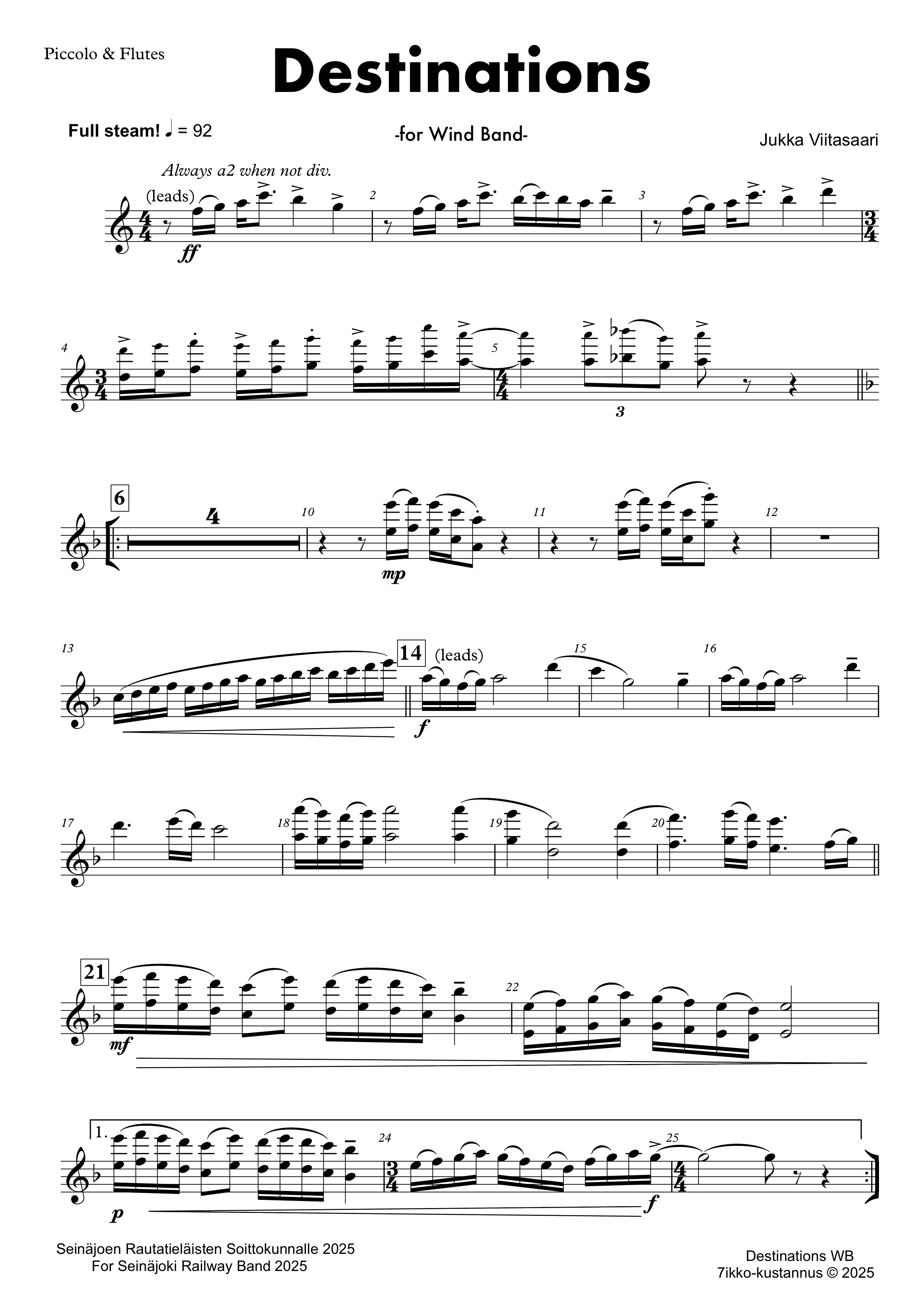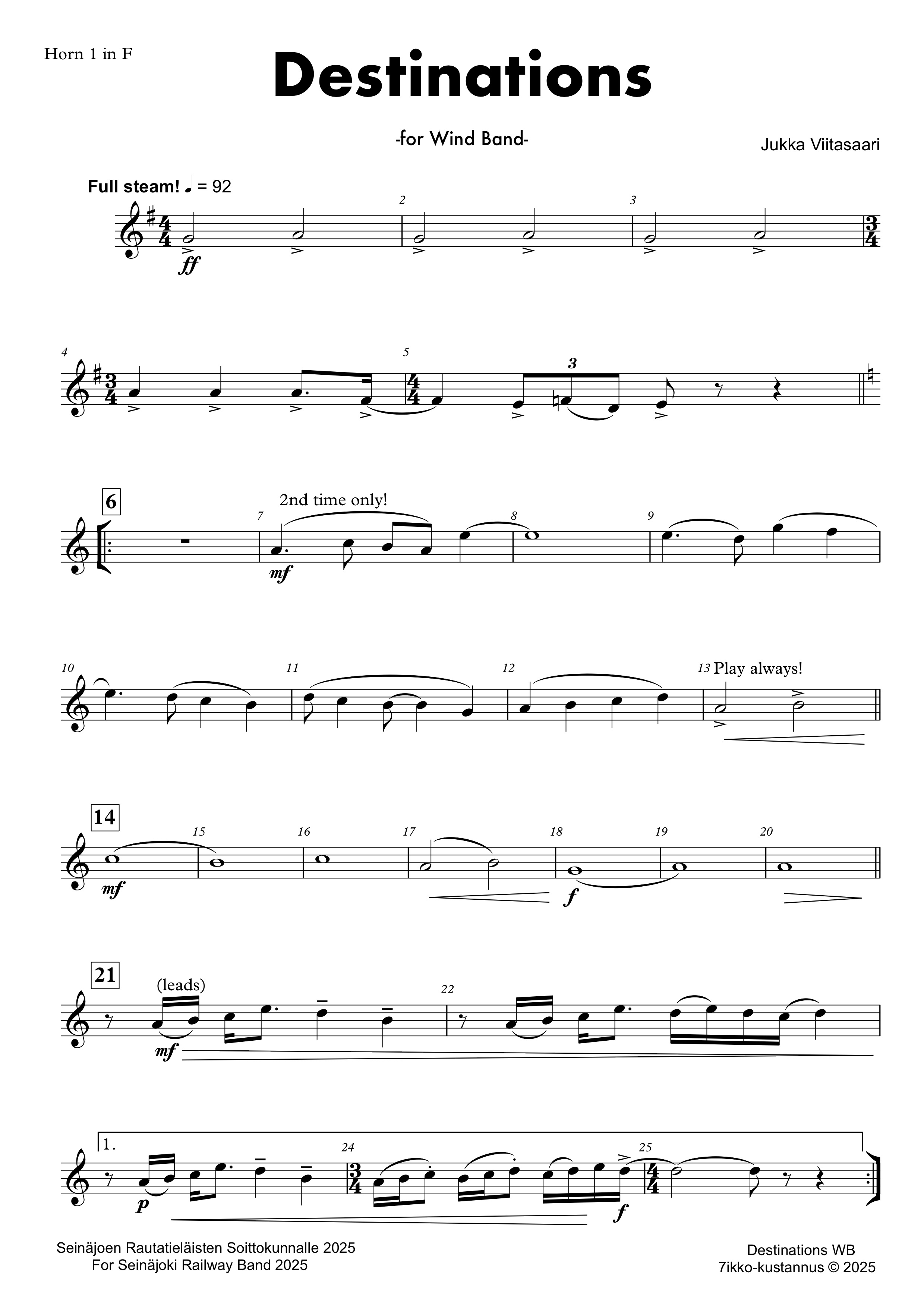 "Destinations" (3´20´´) was commissioned by Seinäjoen Rautatieläisten Soittokunta/The Seinäjoki Railway Workers Band, conducted by Arto Panula.