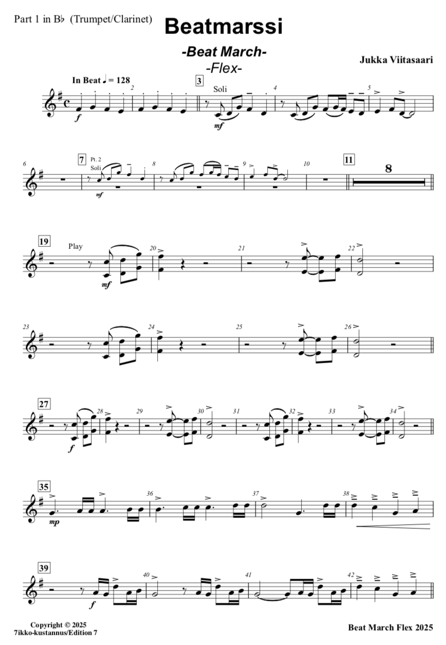 Includes parts for Finnish and international brass septets!