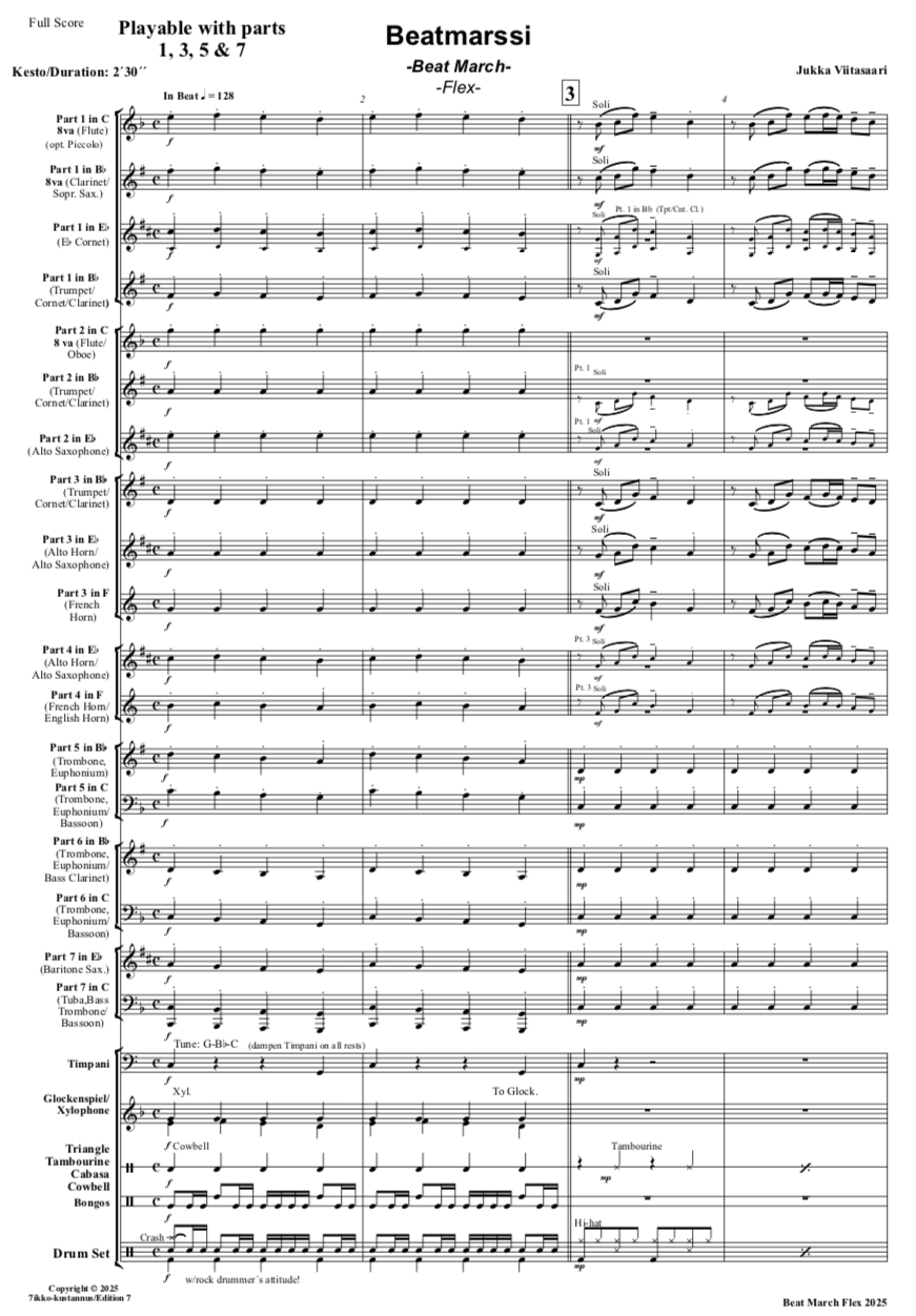Don´t beat it, play it! Grade 3 Duration: 2'30". Playable just with parts 1, 3, 5 & 7!