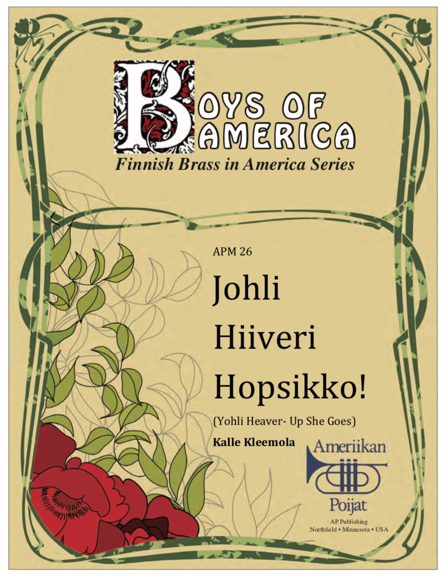 The Finnish Brass in America Series is scored primarily for original Finnish brass septet: E flat Soprano Cornet, two B flat Cornets, an E flat Alto Horn, a B flat Tenor Horn, and Euphonium, and a Tuba. However, these sets also include alternate parts for flute (piccolo), clarinet, French horn, and tenor saxophone. The original seven parts can also be played by other instrumentalists who read those clefs and transpositions (tenor saxophone, bassoon, bass clarinet, etc.) While many of us in Ameriikan poijat have contributed arrangements to this series, it has been primarily of work of Tracey Gibbens, with editing by Russell Pesola and Paul Niemisto.