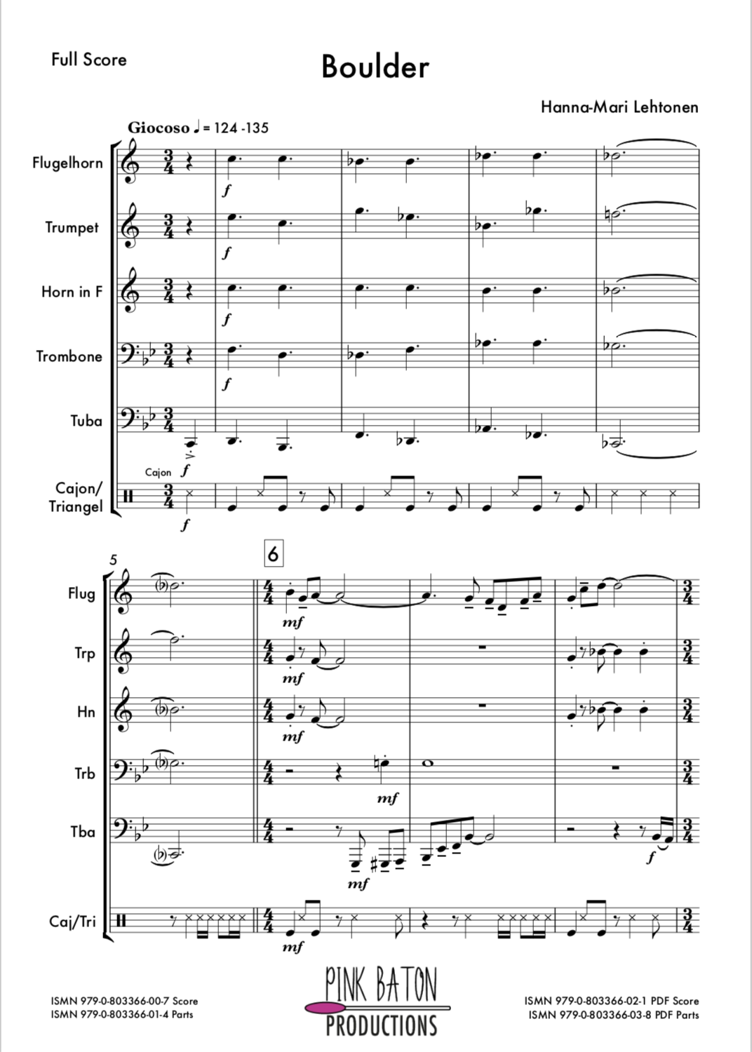 Instrumentation / instrumentaatio: Trumpet in Bb, Flugelhorn in Bb, Horn in F, Trombone BC, Tuba, Percussion (Cajon, Triangle)