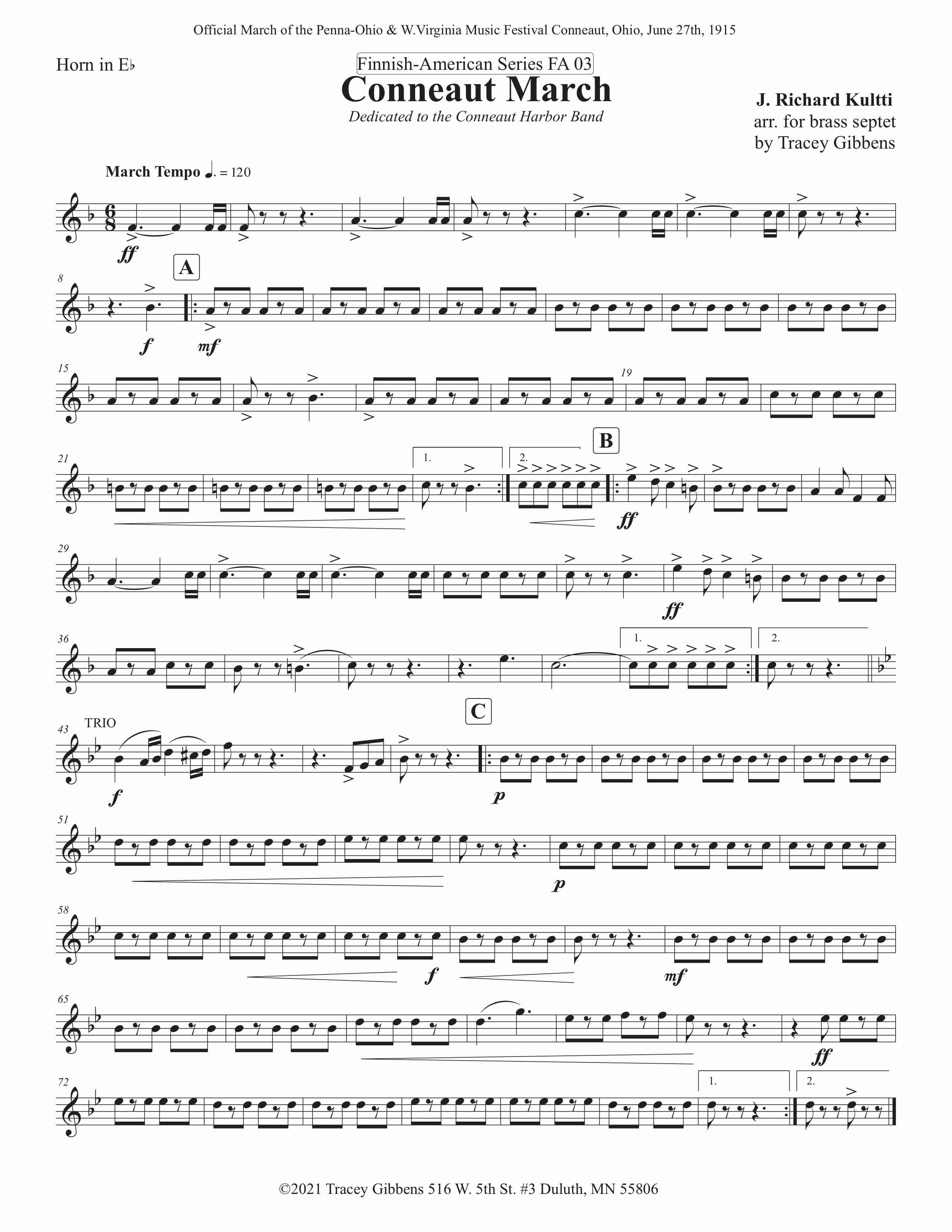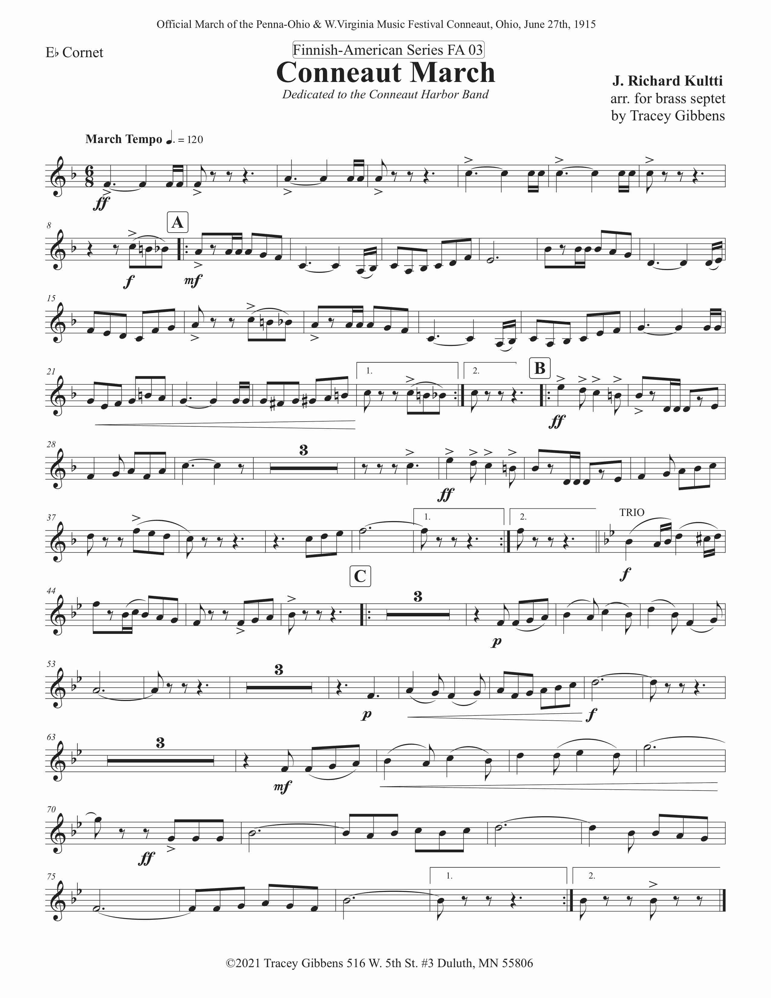 Conneaut March. J. Richard Kultti was bandmaster of the Pohjan aalto Finnish Band in Conneaut, Ohio. He wrote this march in 1915 as the “Official March of the Pennsylvania, Ohio & West Virginia Music Festival”. Pohjan aalto was one of the best known Finnish bands in the eastern US.