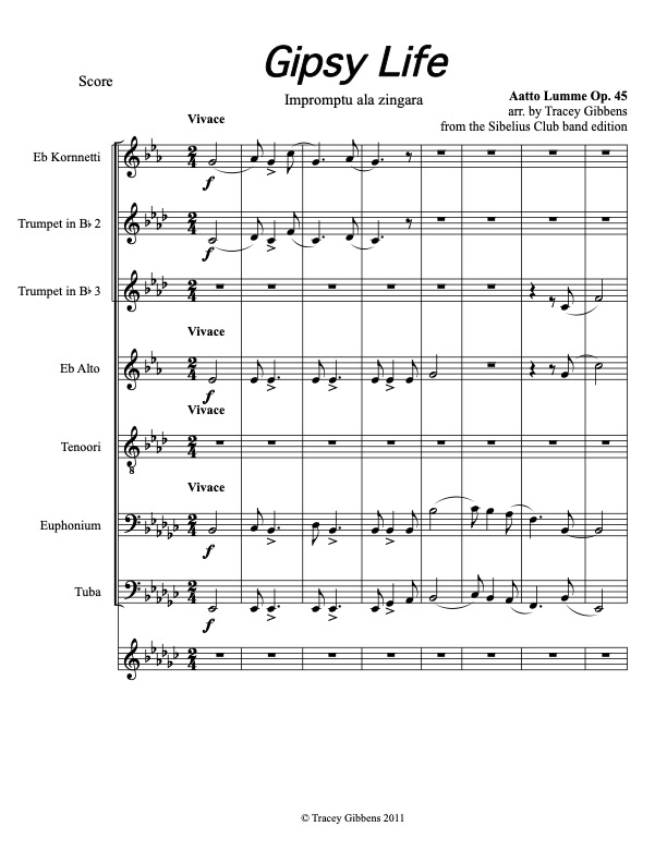 The Finnish Brass in America Series is scored primarily for original Finnish brass septet: E flat Soprano Cornet, two B flat Cornets, an E flat Alto Horn, a B flat Tenor Horn, an Euphonium, and a Tuba. However, these sets also include alternate parts for flute (piccolo), clarinet, French horn, and tenor saxophone. The original seven parts can also be played by other instrumentalists who read those clefs and transpositions (tenor saxophone, bassoon, bass clarinet, etc.) While many of us in Ameriikan poijat have contributed arrangements to this series, it has been primarily of work of Tracey Gibbens, with additional editing by Russell Pesola and Paul Niemisto. The Finnish brass septet (torviseitsikko in Finnish) has its roots in the late 19th century. The Finns that played in the army bands took their music and instruments home with them and formed brass bands in their home communities. These musicians had been trained in the army to play Russian, German, and authentic Finnish music. Many of them emigrated to America.