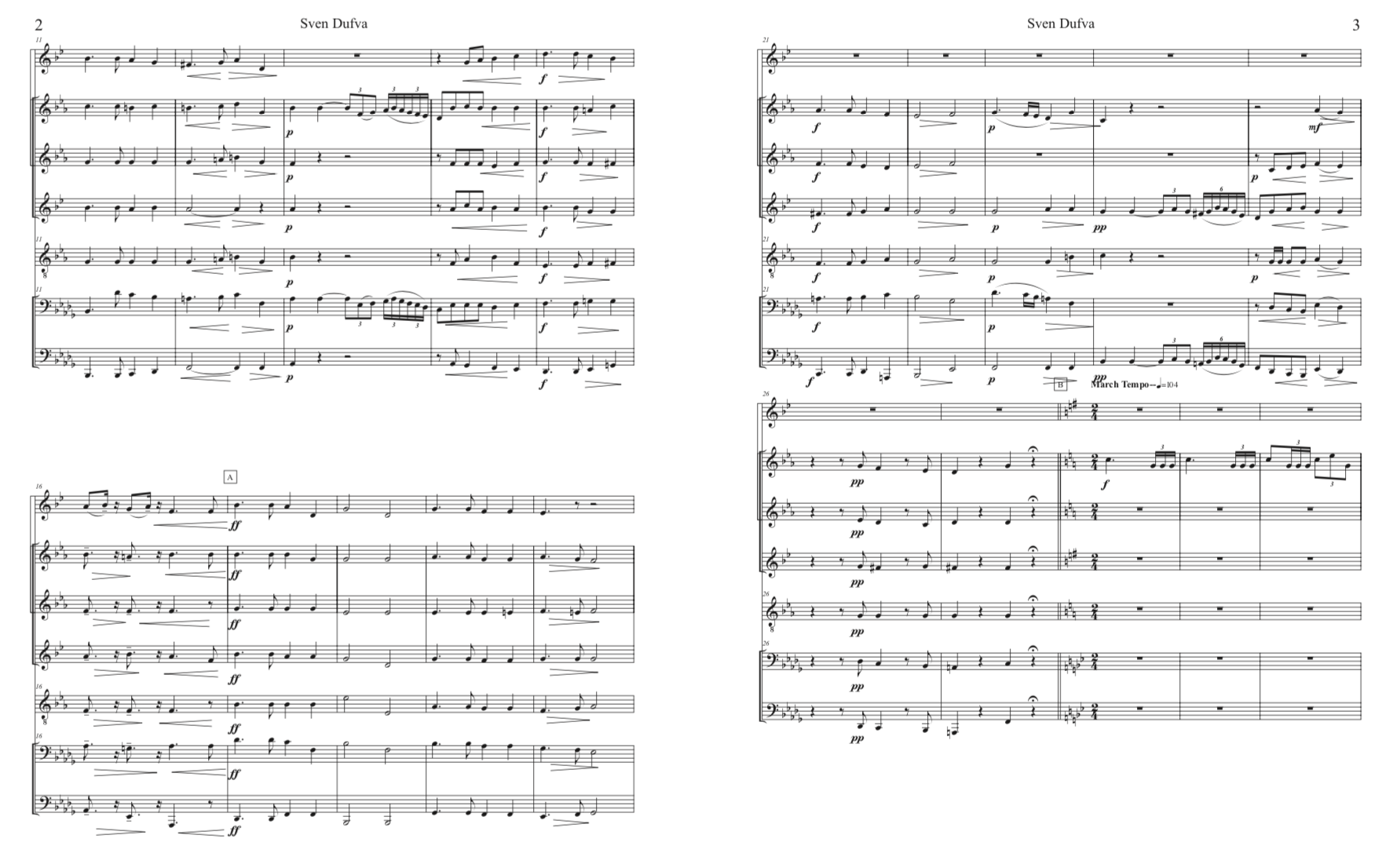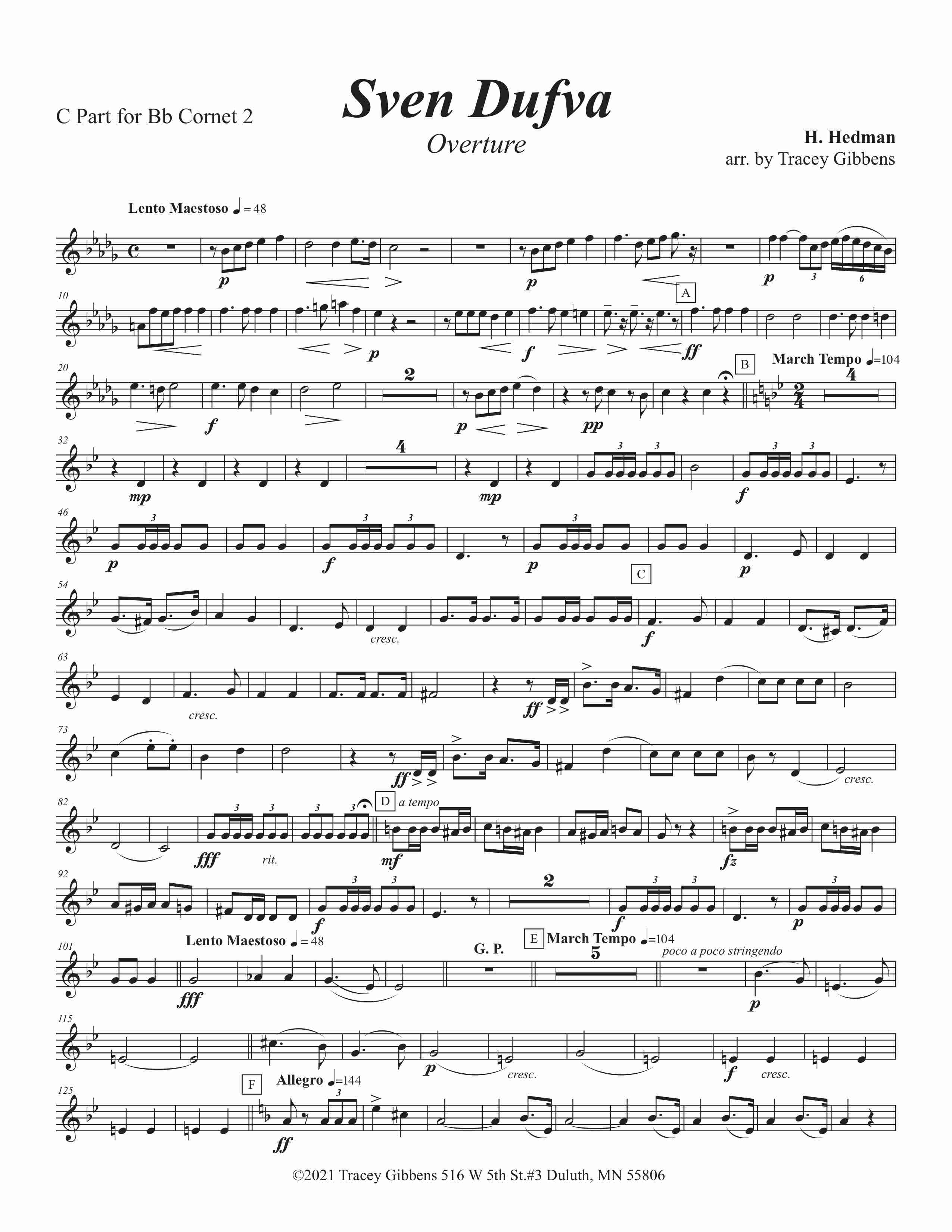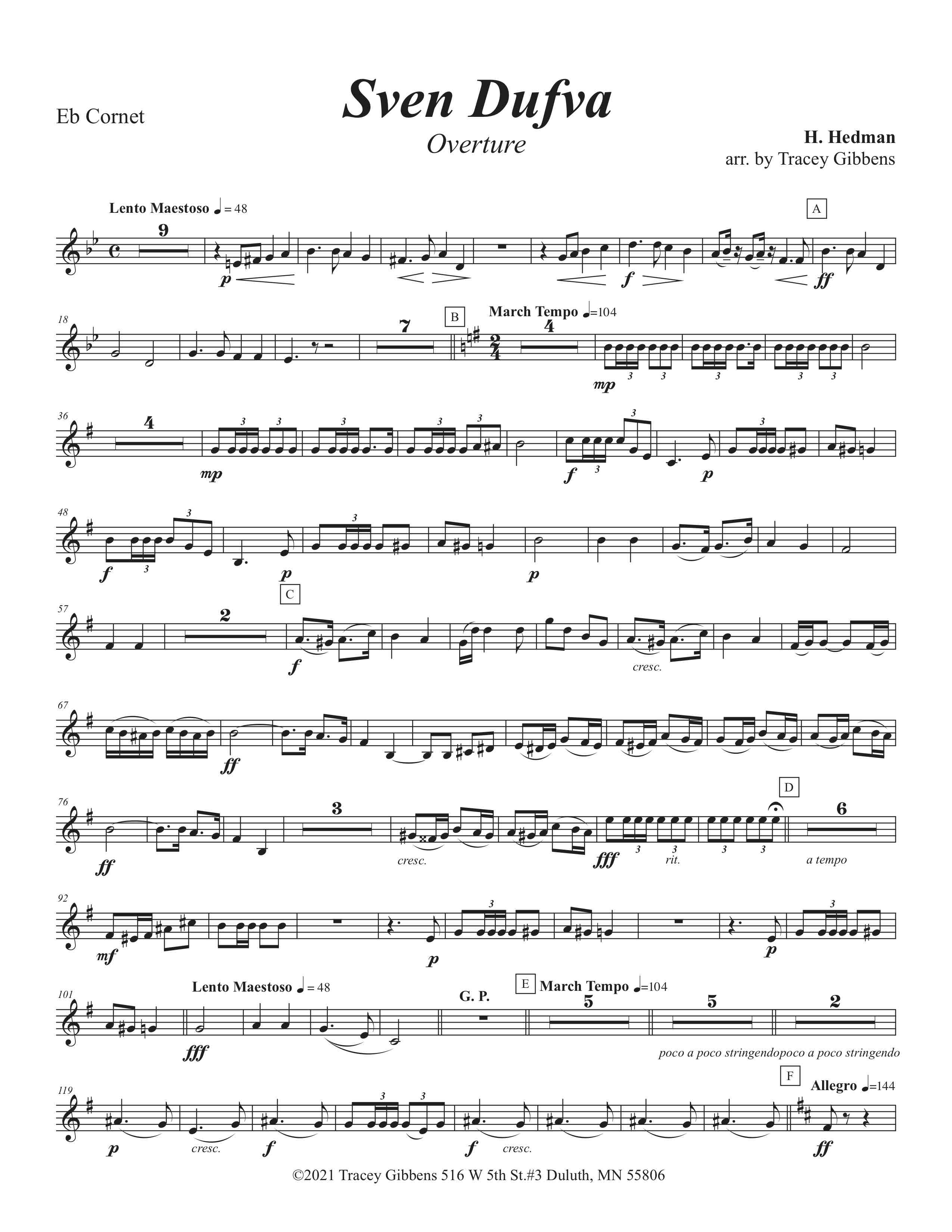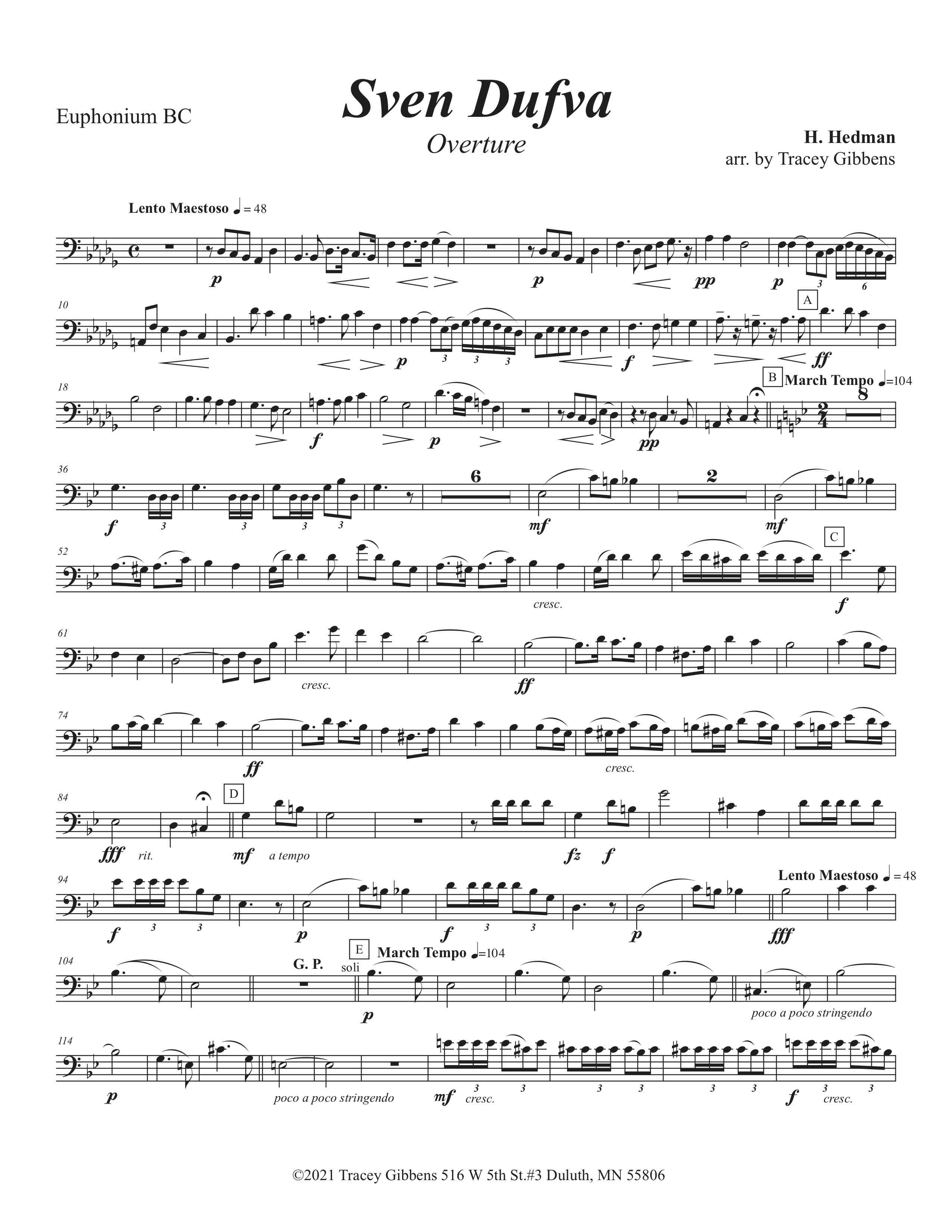 This overture is based on the saga-poem “Sven Dufva” by Finnish poet Johan Ludwig Runeberg. It is the story of a boyhood hero in the Russo-Finnish War of 1807. The tale is somewhat revealed by this early quote from the poem: “With best will, did whatever was asked but always did it wrong”- Sven Dufva later became a soldier- and a hero. This music is well known in Finland, arranged for many instrumental combinations but was originally for brass. This version is based on a band arrangement by Theo Tobani for the Sibelius Clun of Monessen, Pennsylvania.