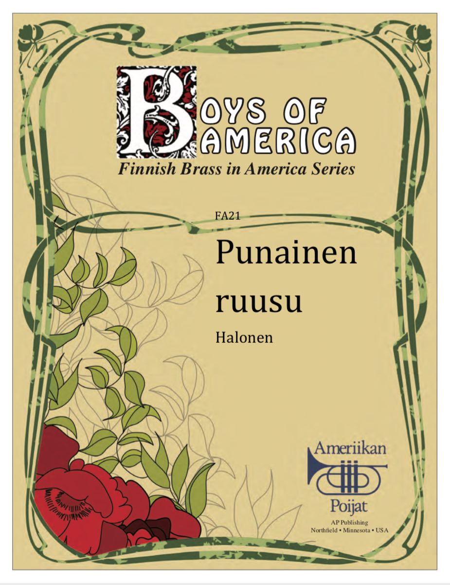 The Finnish Brass in America Series is scored primarily for original Finnish brass septet: E flat Soprano Cornet, two B flat Cornets, an E flat Alto Horn, a B flat Tenor Horn, an Euphonium, and a Tuba. However, these sets also include alternate parts for flute (piccolo), clarinet, French horn, and tenor saxophone. The original seven parts can also be played by other instrumentalists who read those clefs and transpositions (tenor saxophone, bassoon, bass clarinet, etc.) While many of us in Ameriikan poijat have contributed arrangements to this series, it has been primarily of work of Tracey Gibbens, with editing by Russell Pesola and Paul Niemisto.
