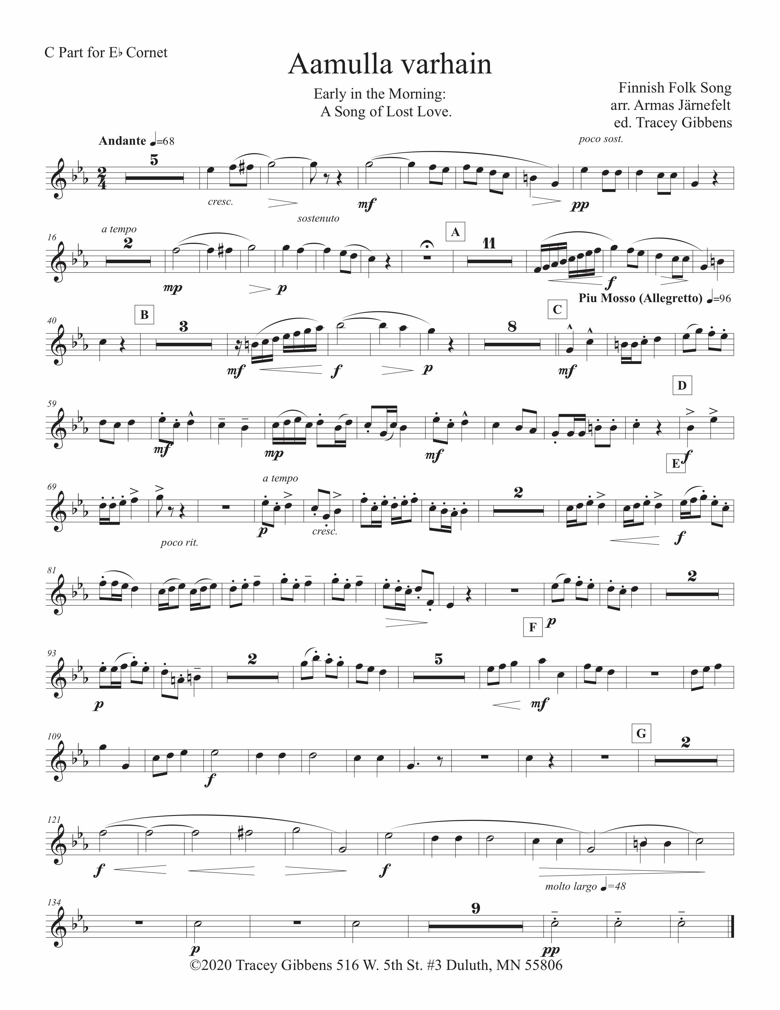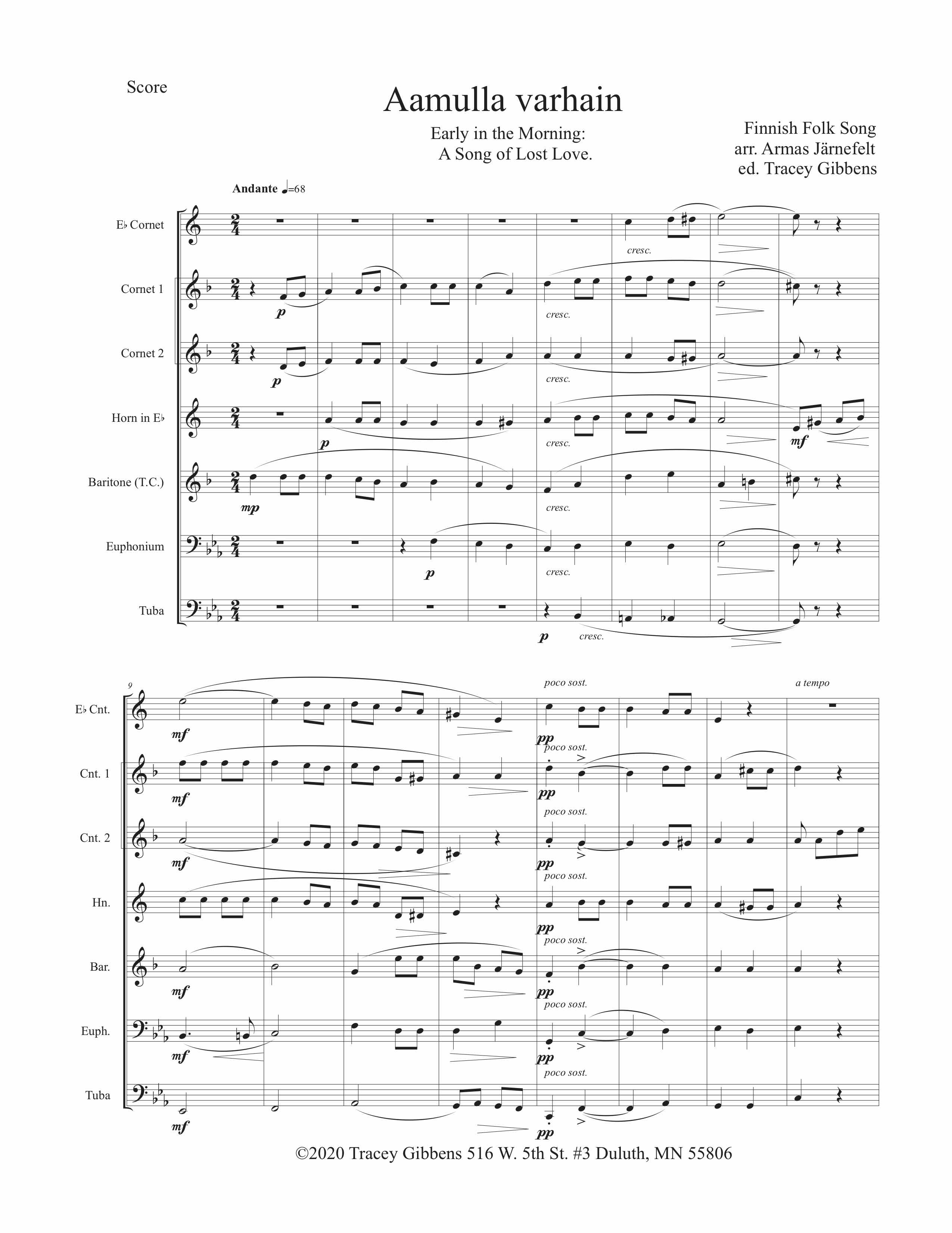 The Ameriikan poijat Finnish Classics Series is scored primarily for original Finnish brass septet: E flat Soprano Cornet, two B flat Cornets, an E flat Alto Horn, a B flat Tenor Horn, an Euphonium, and a Tuba. However, these sets also include alternate parts for flute (piccolo), clarinet, French horn, and tenor saxophone. The original seven parts can also be played by other instrumentalists who read those clefs and transpositions (tenor saxophone, bassoon, bass clarinet, etc.) While many of us in Ameriikan poijat have contributed arrangements to this series, it has been primarily of work of Tracey Gibbens, with editing by Russell Pesola and Paul Niemisto.