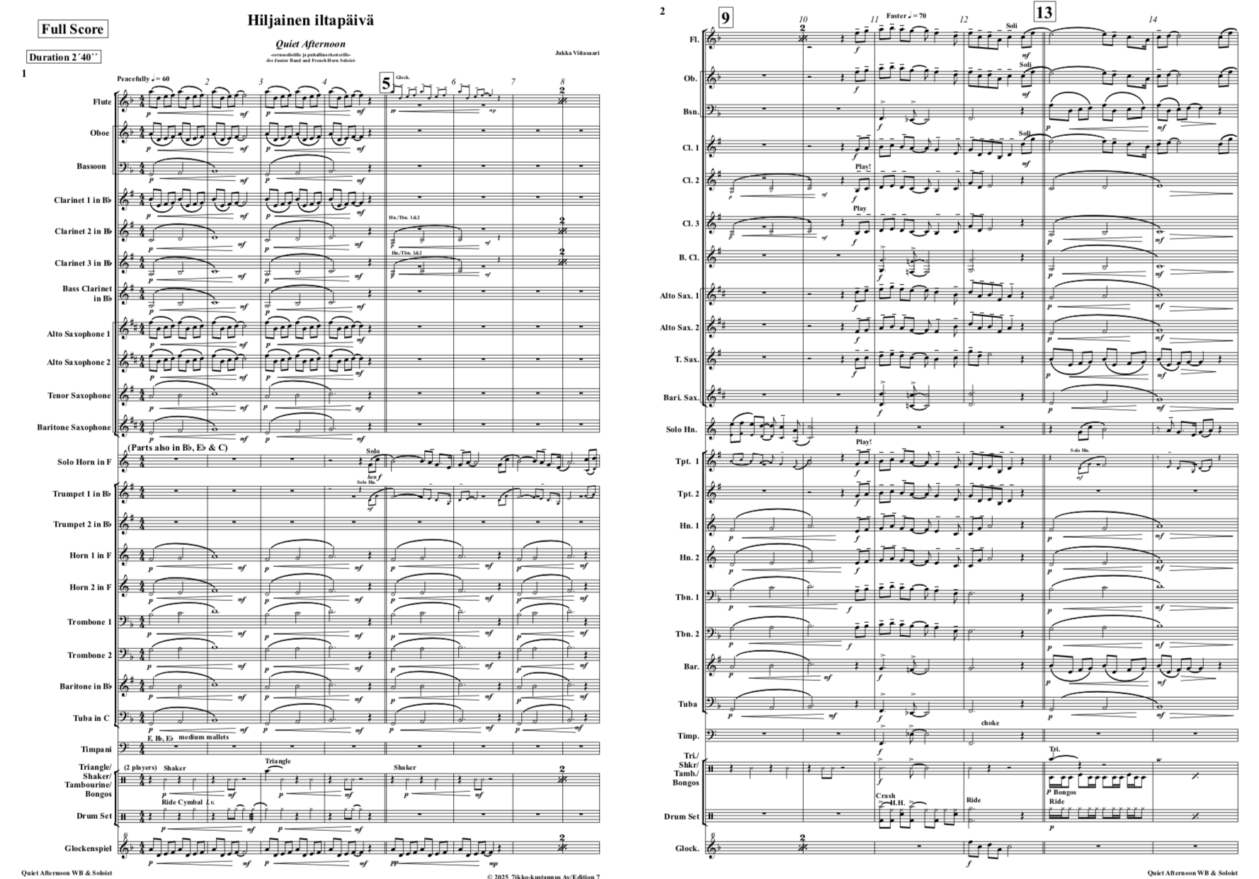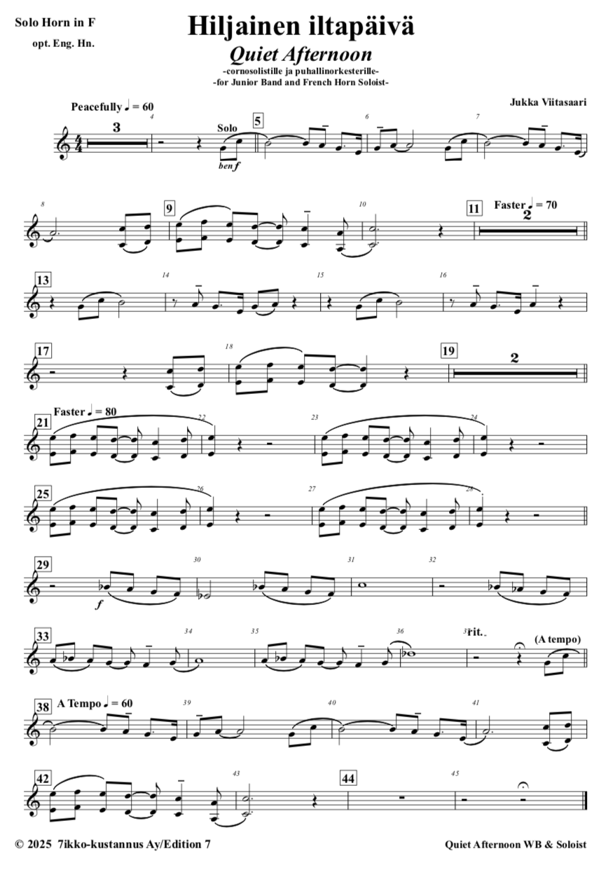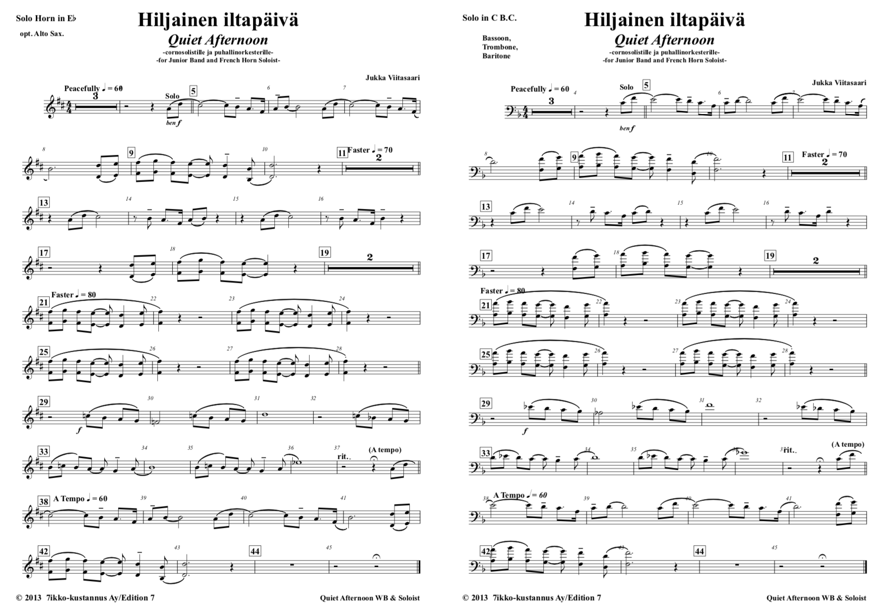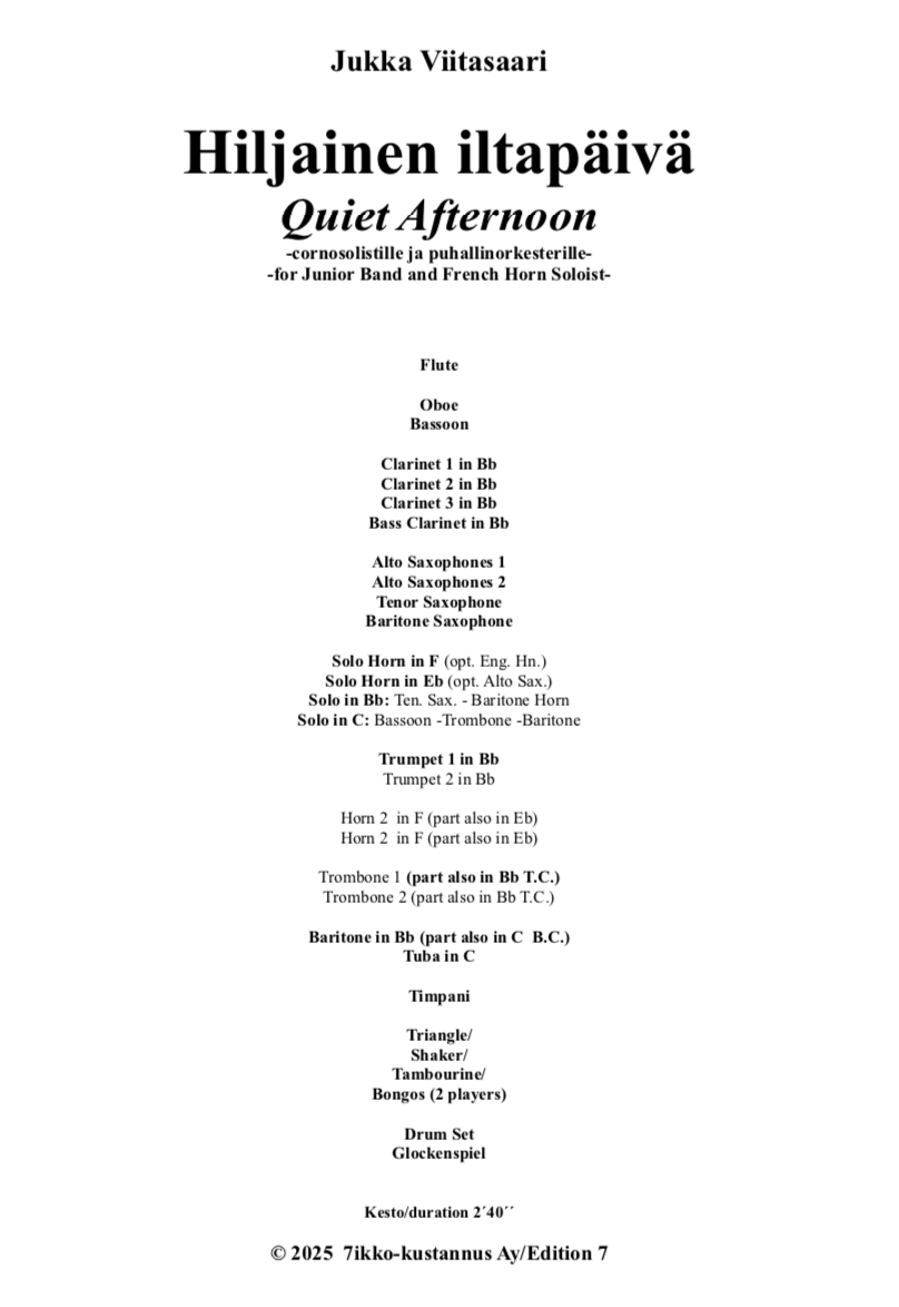 Quiet Afternoon (Hiljainen iltapäivä) a mood piece for band & soloist(s).