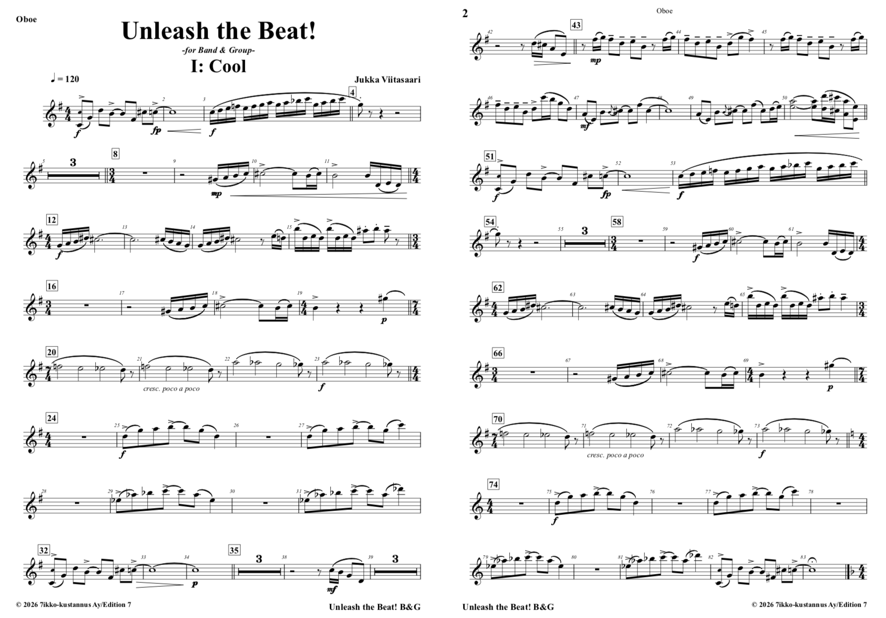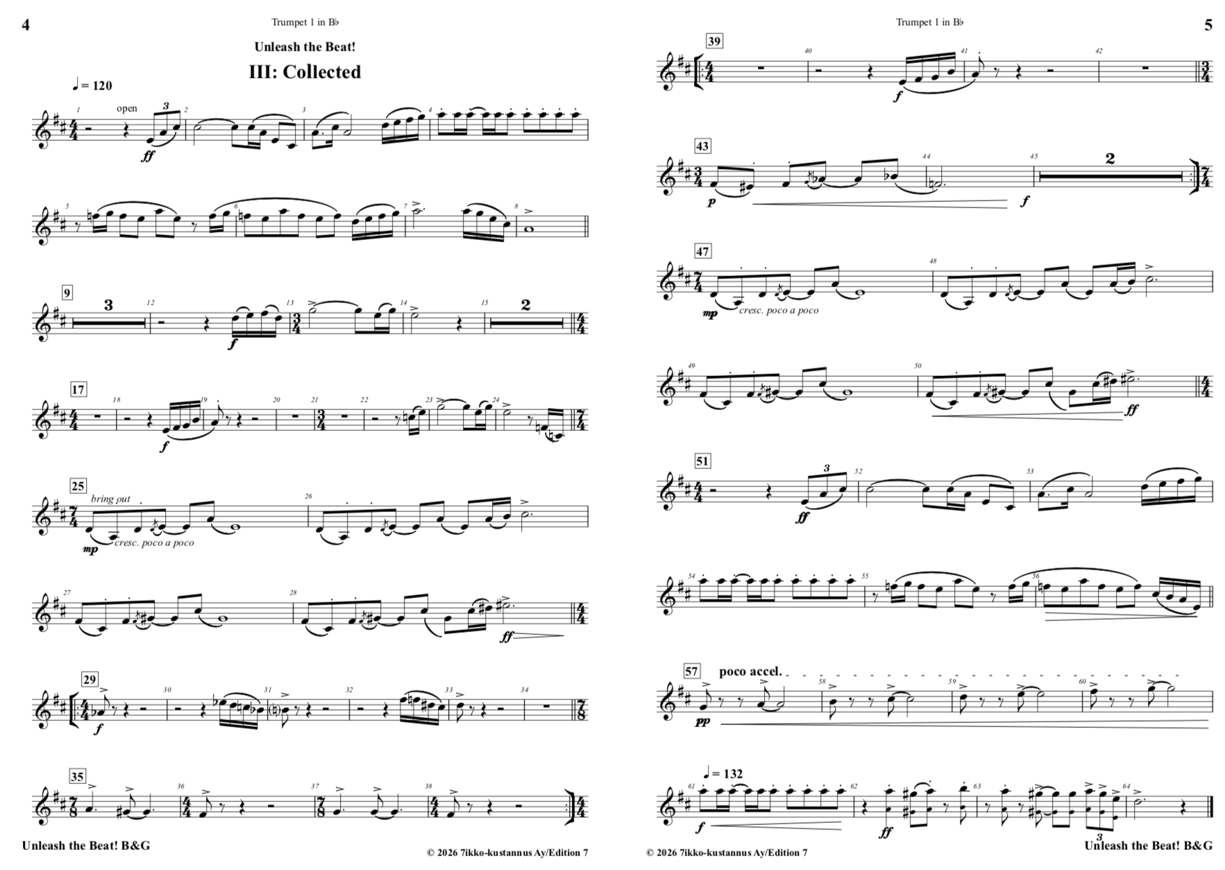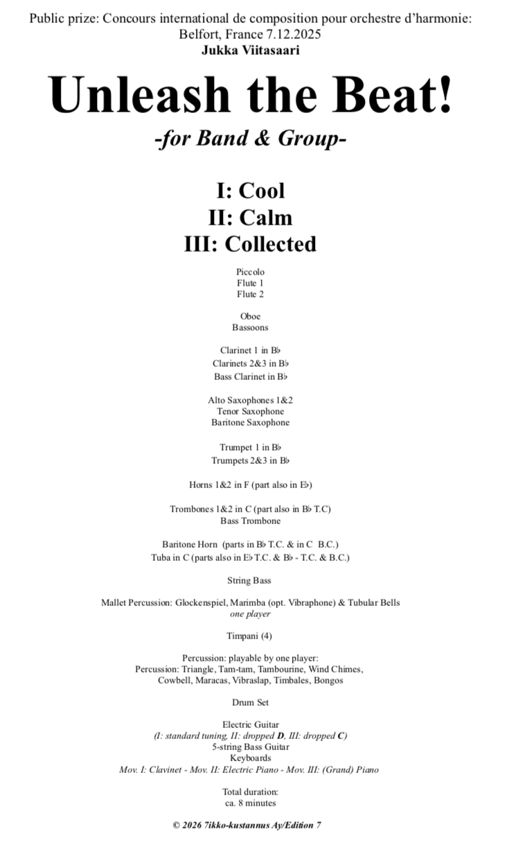 Unleash the Beat! (for Band & group) by Jukka Viitasaari, Grade 4 Duration: 8'00".