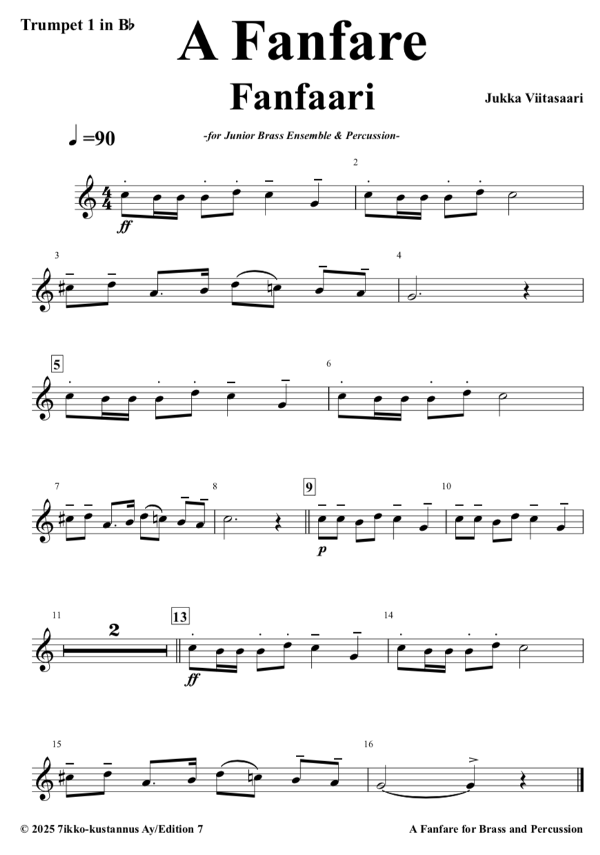 A flexible fanfare for all occasions, ca. grade 2. Duration 42 seconds.