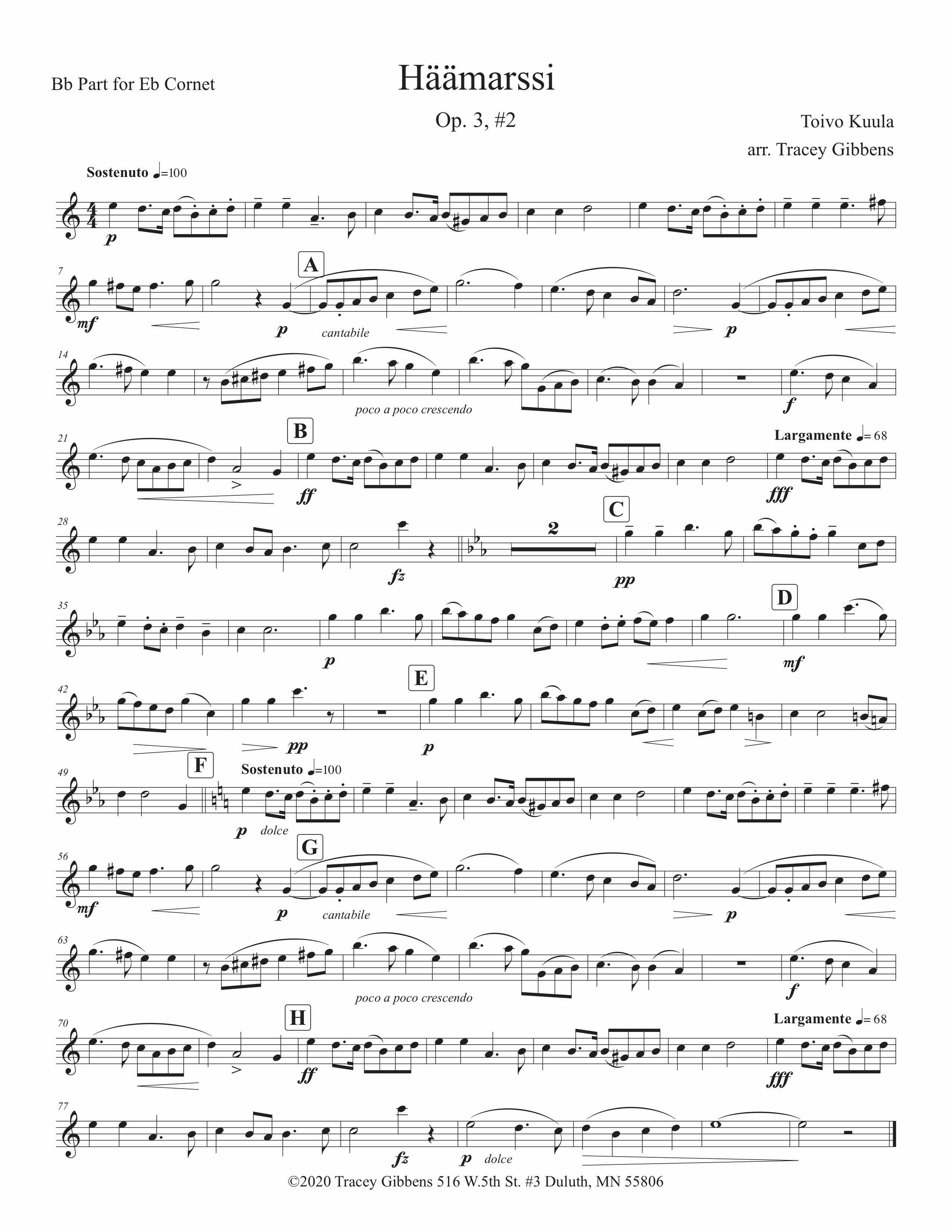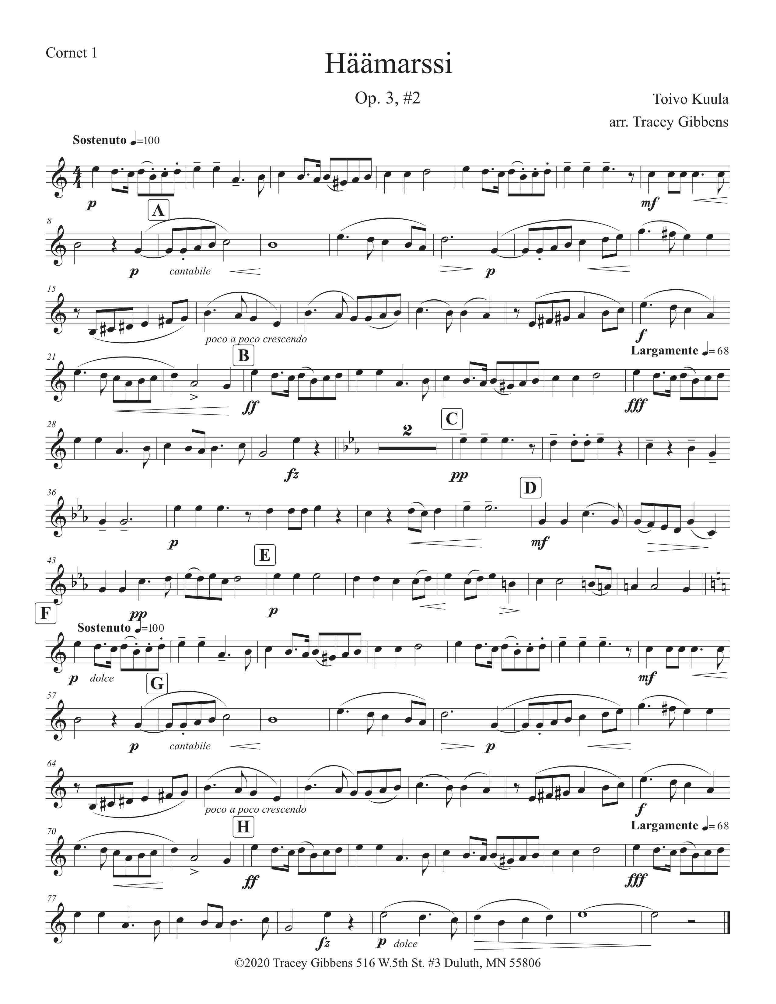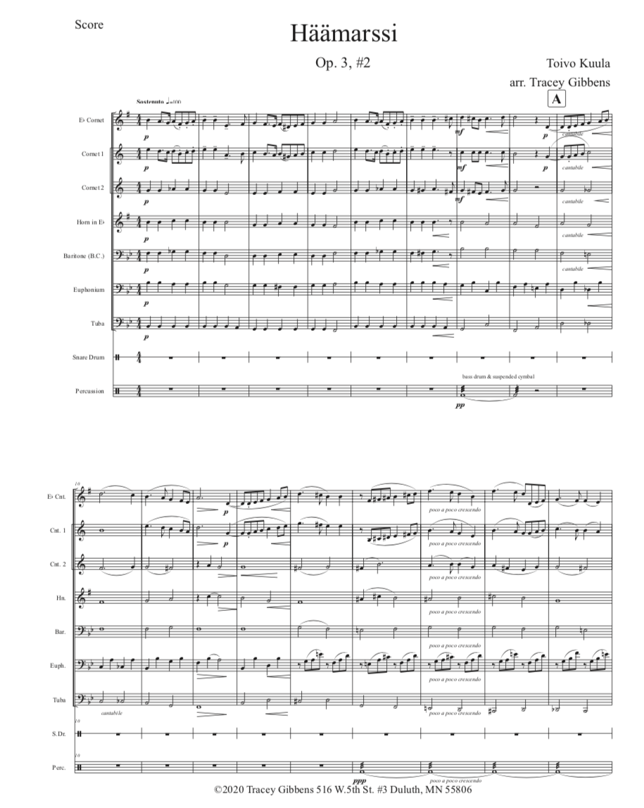 The Finnish Brass in America Series is scored primarily for original Finnish brass septet: E flat Soprano Cornet, two B flat Cornets, an E flat Alto Horn, a B flat Tenor Horn, and Euphonium, and a Tuba. However, these sets also include alternate parts for flute (piccolo), clarinet, French horn, and tenor saxophone. The original seven parts can also be played by other instrumentalists who read those clefs and transpositions (tenor saxophone, bassoon, bass clarinet, etc.) While many of us in Ameriikan poijat have contributed arrangements to this series, it has been primarily of work of Tracey Gibbens, with editing by Russell Pesola and Paul Niemisto.