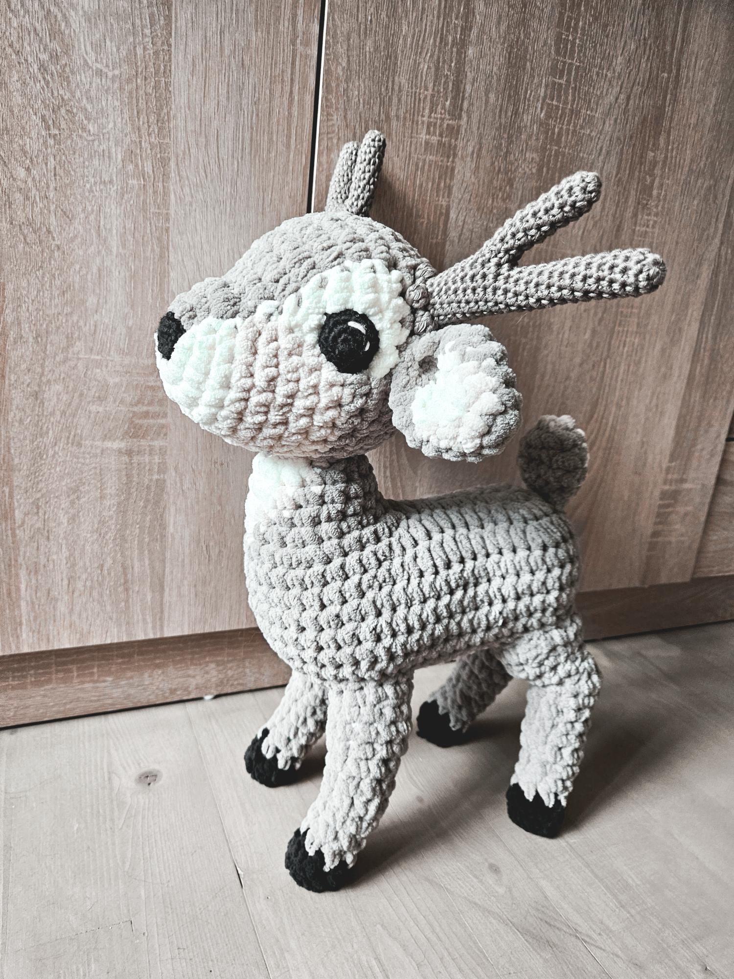 Jalat on tehty kaksinkertaisella seinämällä ja täytetty langanpätkillä, jotta niihin saadaan jämäkkyyttä ja peura pysyy paremmin pystyssä. Pienestä tukevuudesta huolimatta ne ovat edelleen pehmeät, joten saatat joutua asettelemaan ne huolellisesti saadaksesi peurasi seisomaan nätisti.