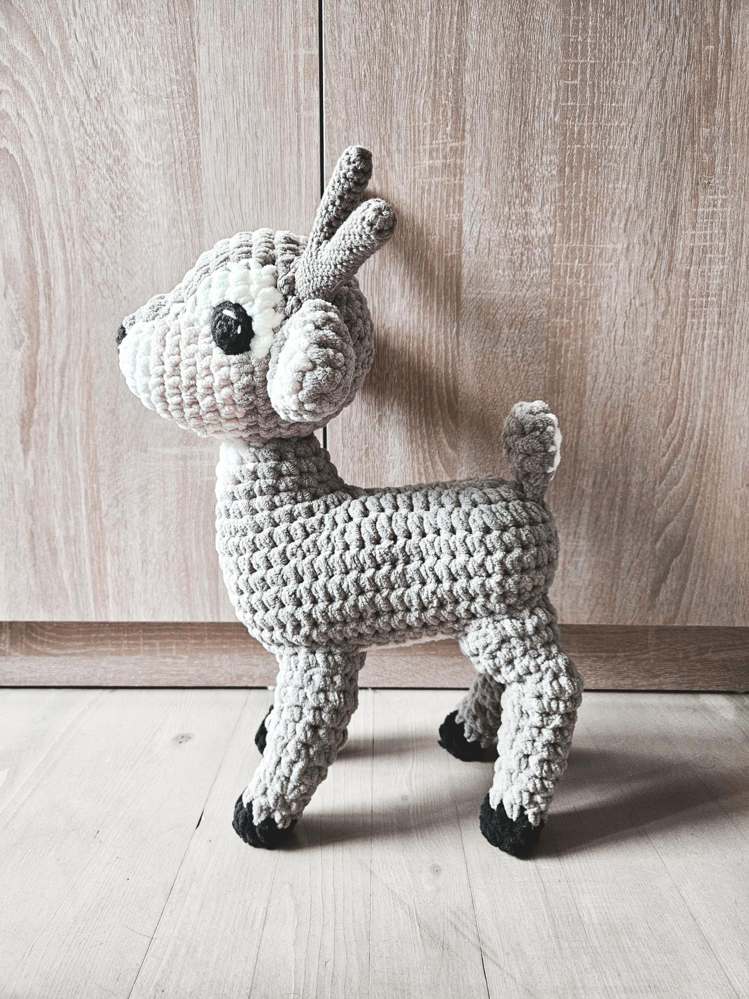 Tämä hurmaava, käsin virkattu peura on valmistettu pehmeästä ja laadukkaasta langasta, mikä tekee siitä kestävän, turvallisen ja erityisen suloisen kainalokaverin. Sulavalinjainen olemus, sirot jalat ja sympaattinen katse herättävät henkiin tämän metsän rauhallisen asukkaan, täydellinen kumppani niin lapsille kuin aikuisillekin. 🦌