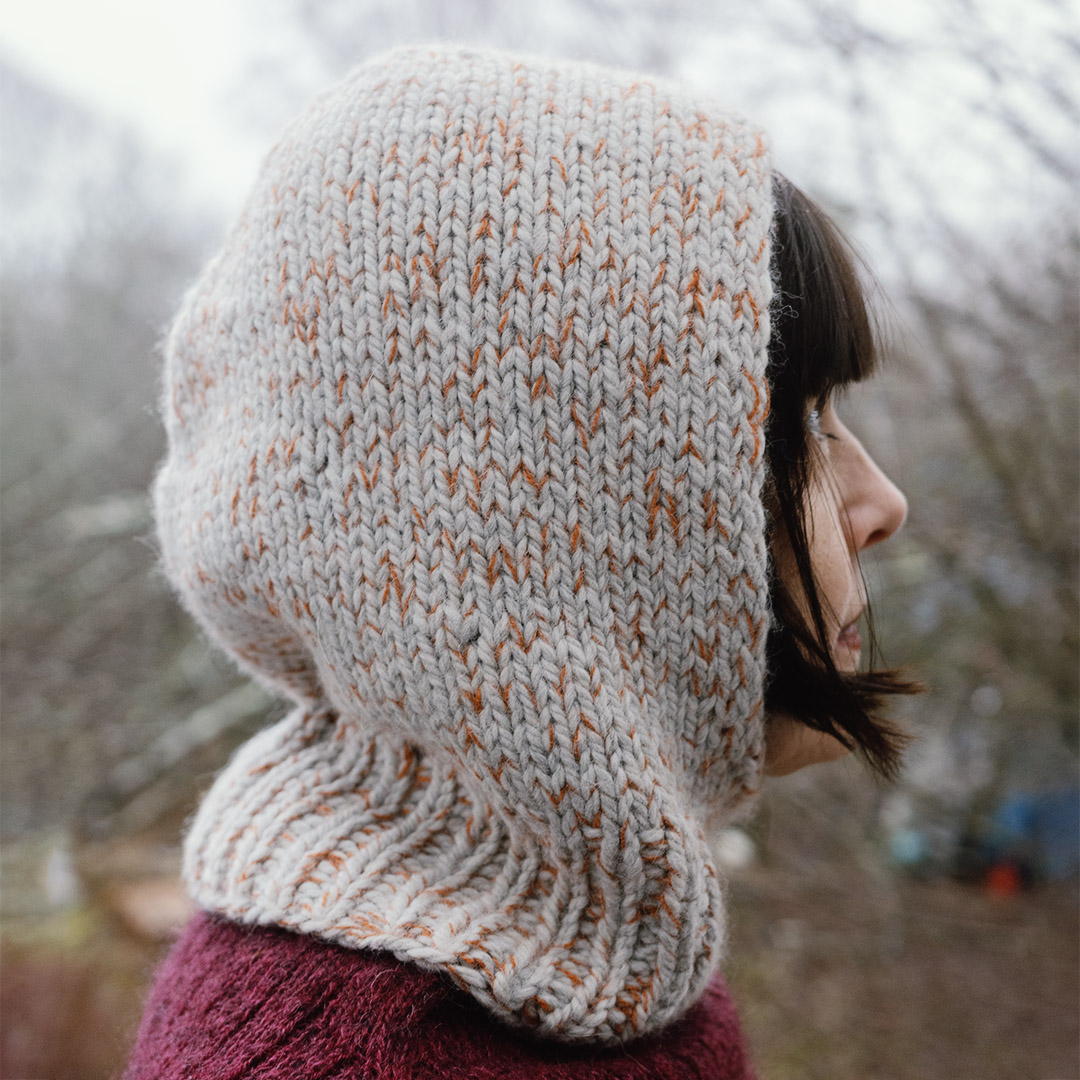 Paksuilla opuikoilla huppu valmistuu nopeasti, mutta vaatii valmiutta keskittyä päälaen muotoiluun. Ohjeessa annetaan kaksi erilaista lankavaihtoehtoa.