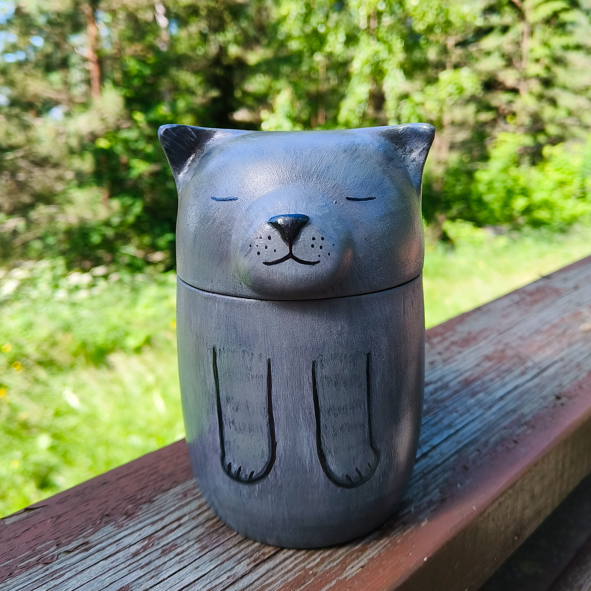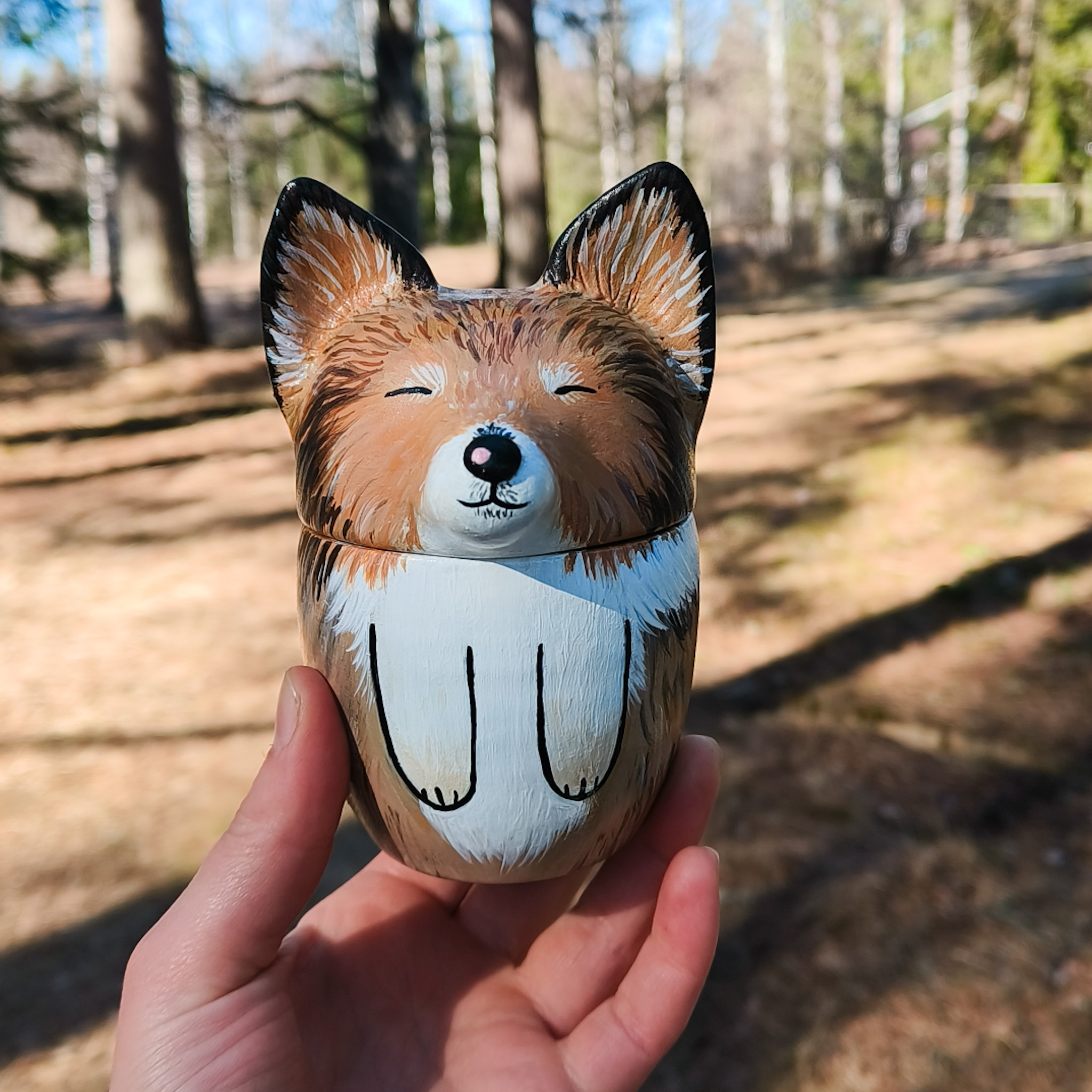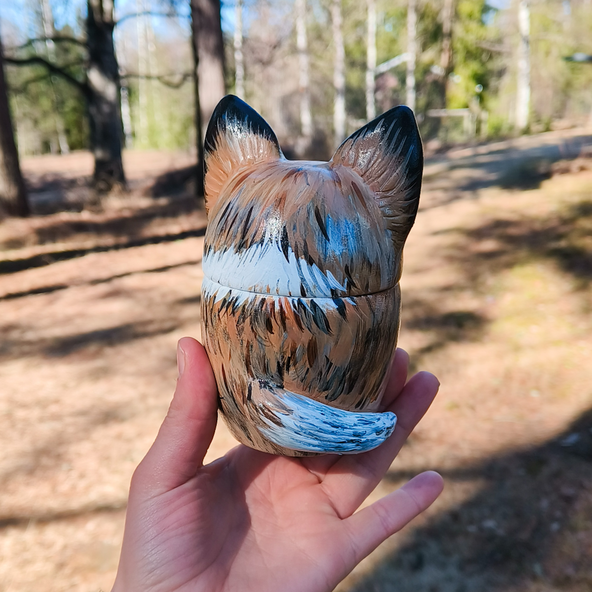 Jokaisen uurnakoon voi myös muokata muistopatsaaksi, eli silloin teoksessa ei ole avautuvaa kantta. Hinta on sama kuin sen kokoisella uurnalla. Kun koko on selvillä, voit lähettää minulle kuvia lemmikistäsi ja aloitan tilauksen valmistamisen. Lähetän sinulle kuvia kommentoitavaksi sekä muotoilu-, että maalausvaiheessa, jotta työstä tulee varmasti mieleinen. Uurna on keraaminen, ja se maalataan akryyliväreillä ja pinta käsitellään lakalla. Tätä uurnaa ei ole tarkoitettu haudattavaksi, vaan koriste-esineeksi ja tuhkan säilytykseen.