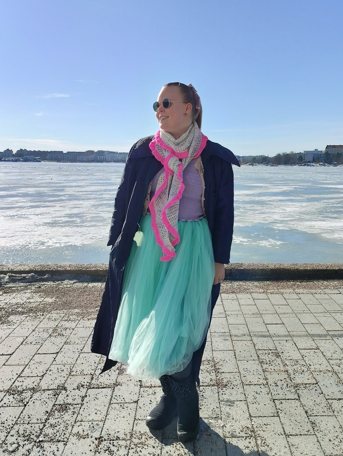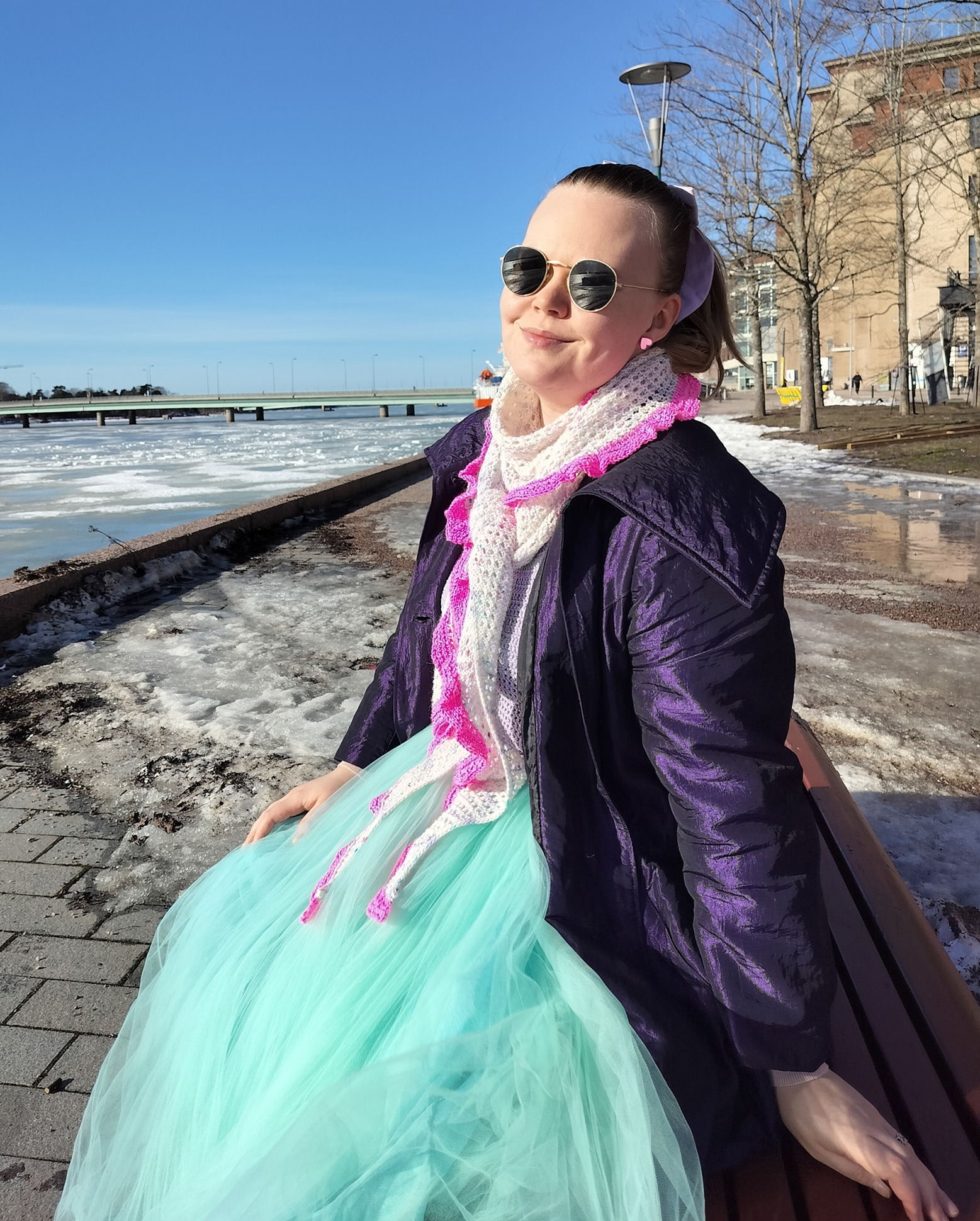 Ilmainen neuleohje helppoon pitsihuiviin, jonka reunaa koristaa söpö rimpsu.
