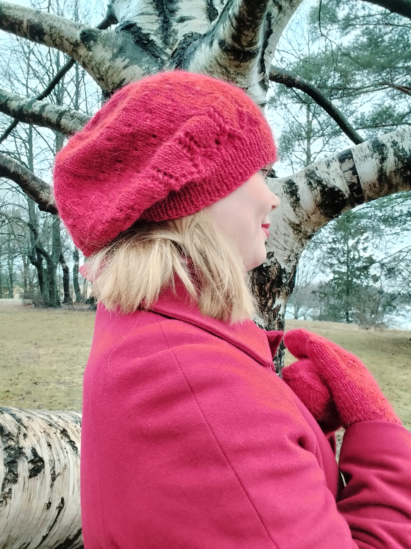 Kuvissa on mallineuleena punainen pipo. Tilauksesi valmistetaan maitosuklaan ruskeana. Näet kuvassa langan vyyhdillä.