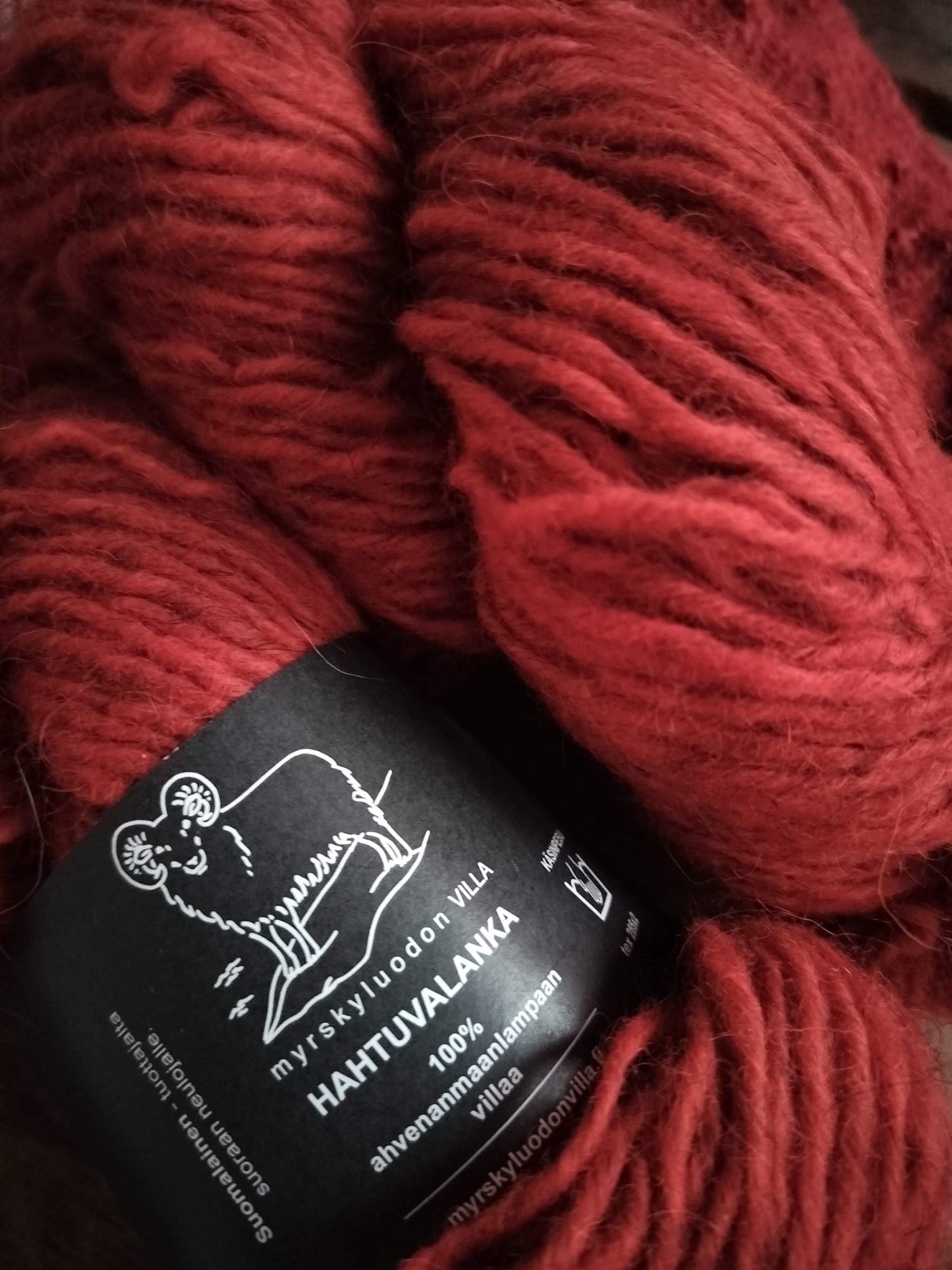 Lanka on Myrskyluodon villan 2-säikeistä hahtuvalankaa, joka on äärimmäisen laadukasta, pehmeää, lämmintä ja vettä hylkivää. Myrskyluodon villan lampaat elävät Suomen saaristossa onnellisessa kodissa ja lanka on Myrskyluodon villan itse käsin värjäämää.