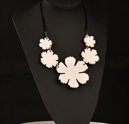 Nahkainen kaulakääty on käsin muotoiltu ja hyvin kevyt. Materiaali on värjäämätöntä kasviparkittua nahkaa. Osat muotoillaan yksitellen käsin ja värit sekoitetaan pigmenteistä joka maalauskerta erikseen, jokainen koru on siis ainutlaatuinen. Kaikki metalliosat ovat nikkelittömiä. Säädettävä nauha on iholla miellyttävältä tuntuvaa samettia. Suurimman kukan halkaisija on n. 75mm. Voit käyttää korua monella eri tavalla; pukea sen juuri oikealle korkeudelle kaulaasi, kiepauttaa pannaksi hiuksiin tai otsalle, ranteessa, nilkassa... Keveytensä ansiosta House of Simone nahkakorua voivat käyttää myös useimmat tuntoyliherkät henkilöt.