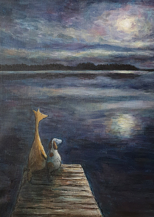 Size A4, poster of Hulmu and Haukku's Moonlight painting. Original painting by Aija Saukkonen.