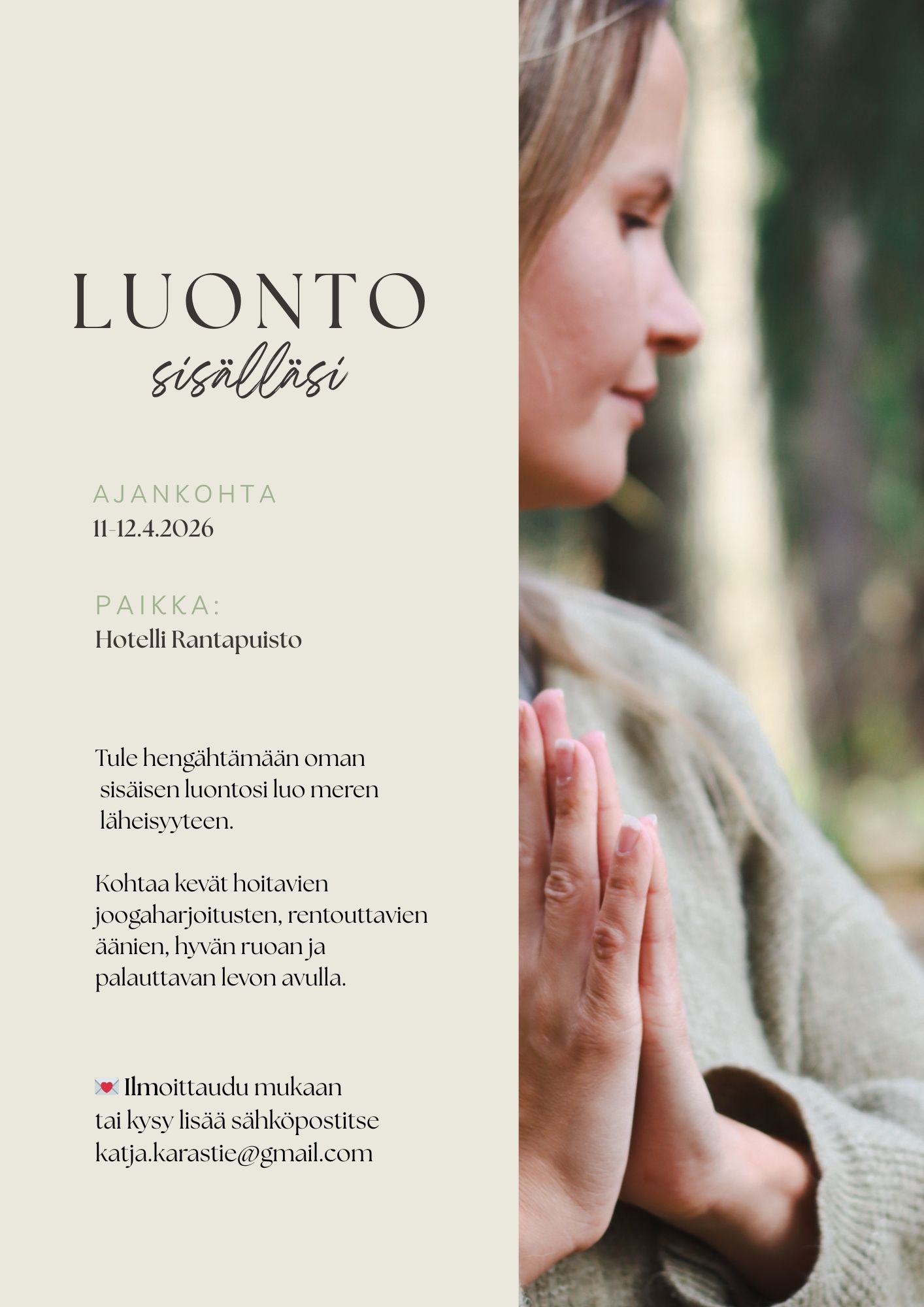 💌 Ilmoittaudu mukaan ostamalla paikka täältä tai kysy lisää sähköpostitse katja.karastie@gmail.com