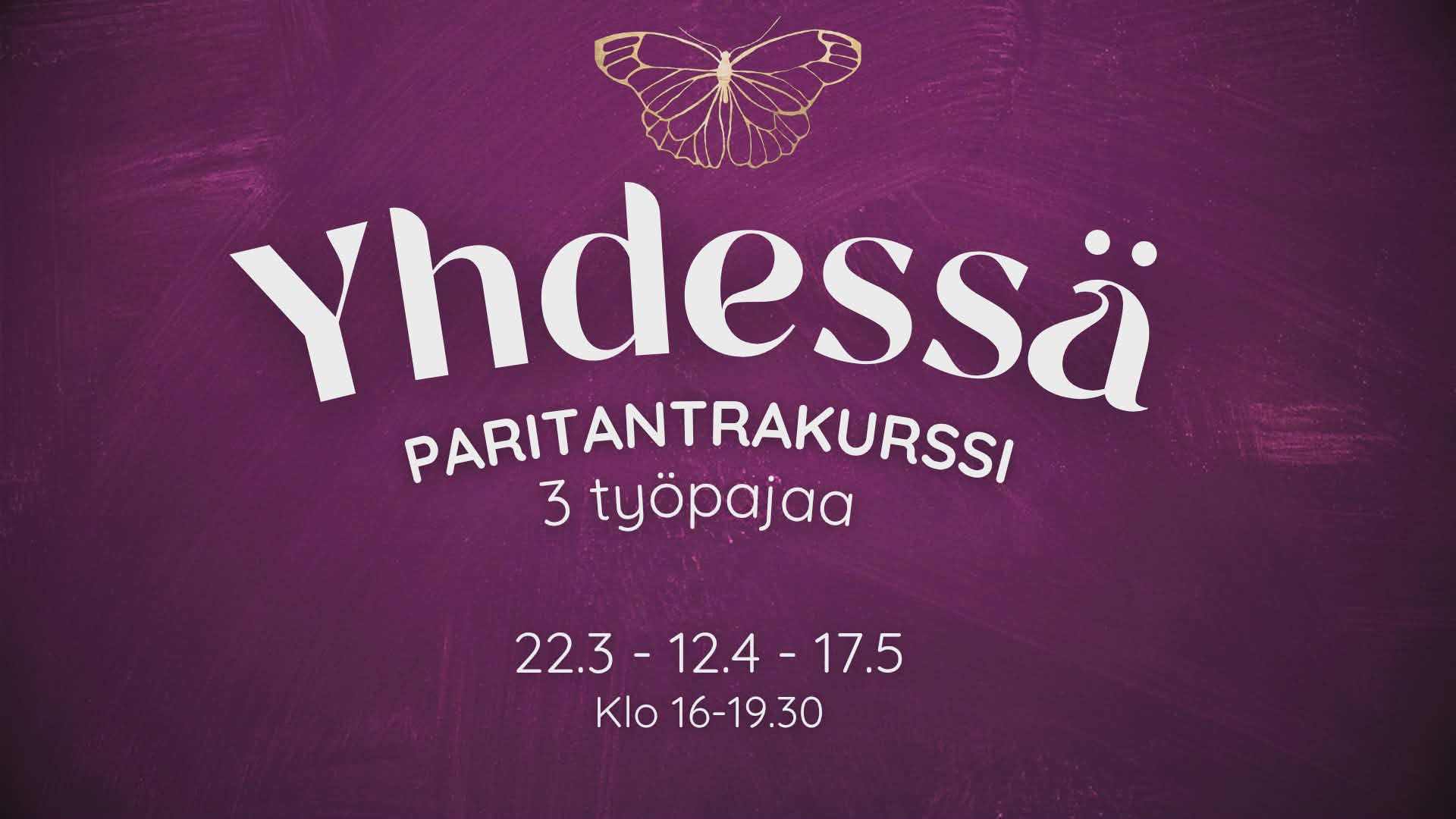 Lämpimästi tervetuloa Yhdessä Paritantrakurssille – Yhteyden, kehollisuuden, aistien ja läsnäolon matkalle. Tämä kolmen työpajan sarja muodostaa kauniin kokonaisuuden itsenne, toistenne ja parisuhteenne äärelle. MISSÄ JA MILLOIN? 22.3 12.4 17.5 Klo 16.00-19.30. Kurssin Early Bird-hinta 330€/pari on voimassa 14.2.2026 saakka. Kurssin hinta tämän jälkeen 370€/pari. Huom! Löydätte oston jälkeen Holvin kuitissa olevan linkin kautta saapumisohjeet.