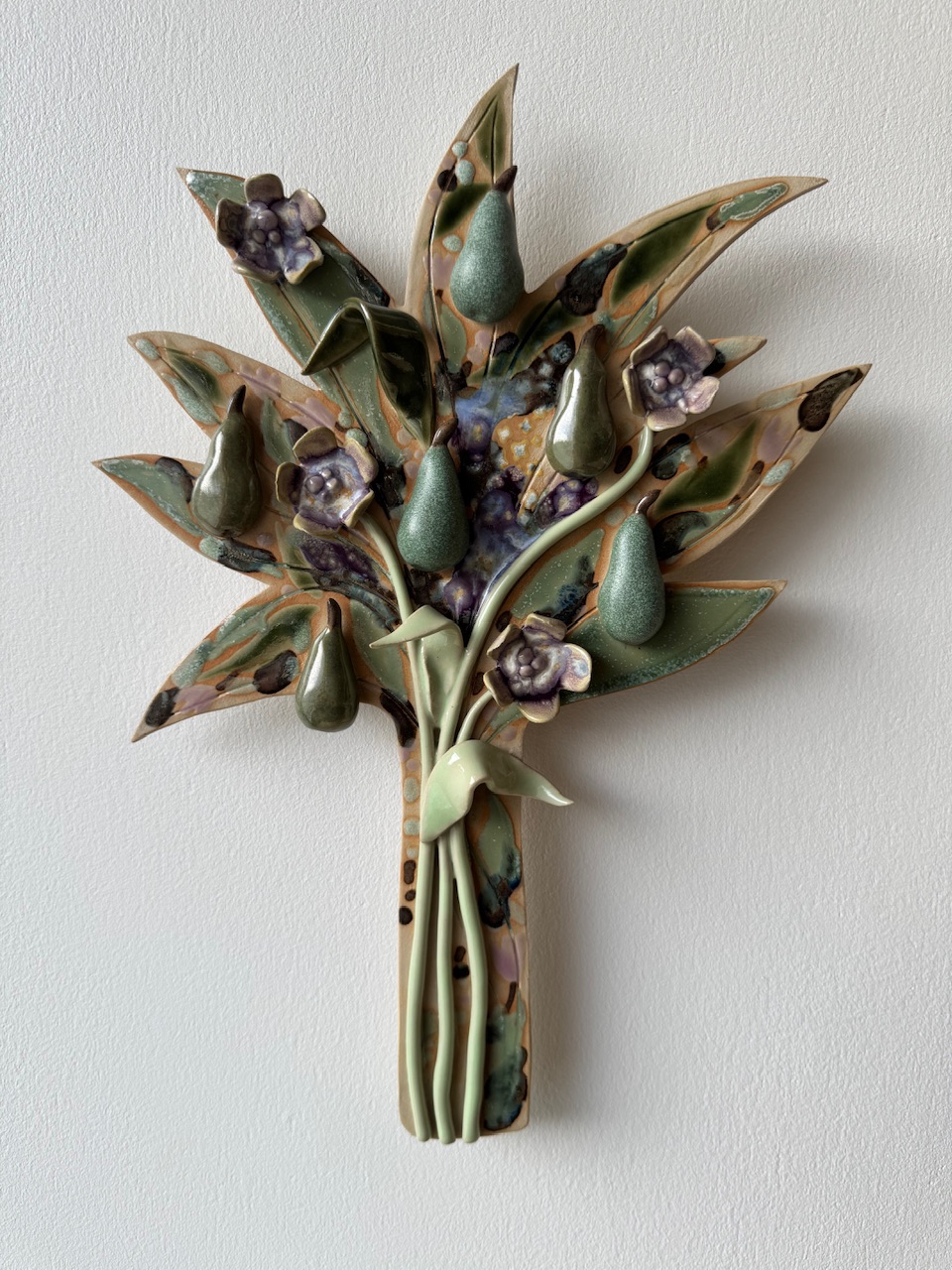 Veistos/seinäreliefi, 32 x 23cm, keramiikka, lasite. Signeerattu.