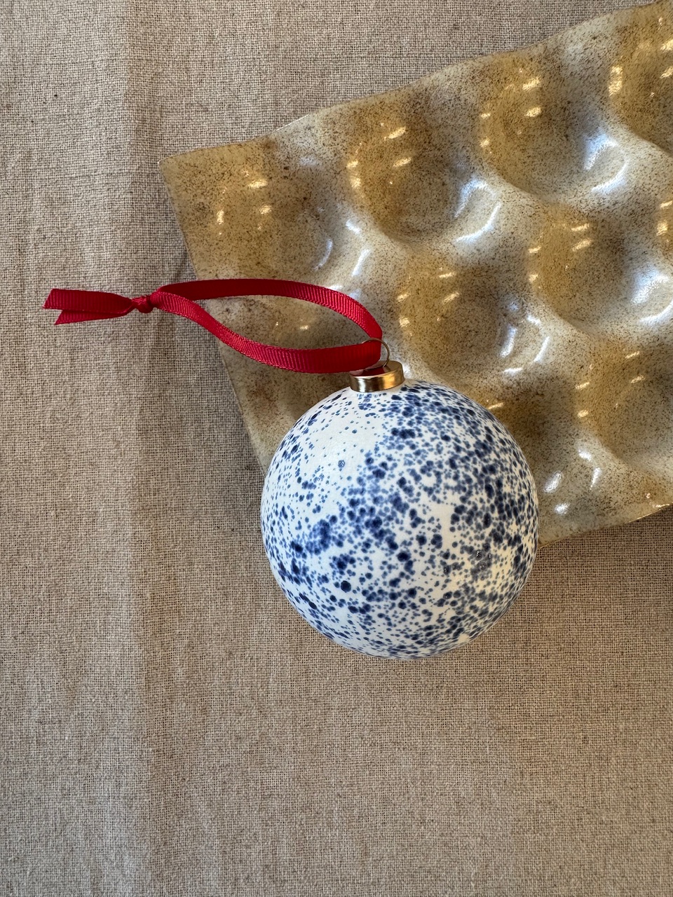 Keraaminen joulupallo, lasite. Pallon halkaisija n. 7cm.