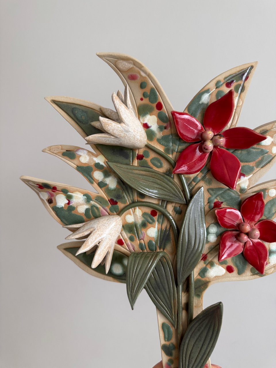 Veistos/seinäreliefi, 35 x 25cm, keramiikka, lasite.