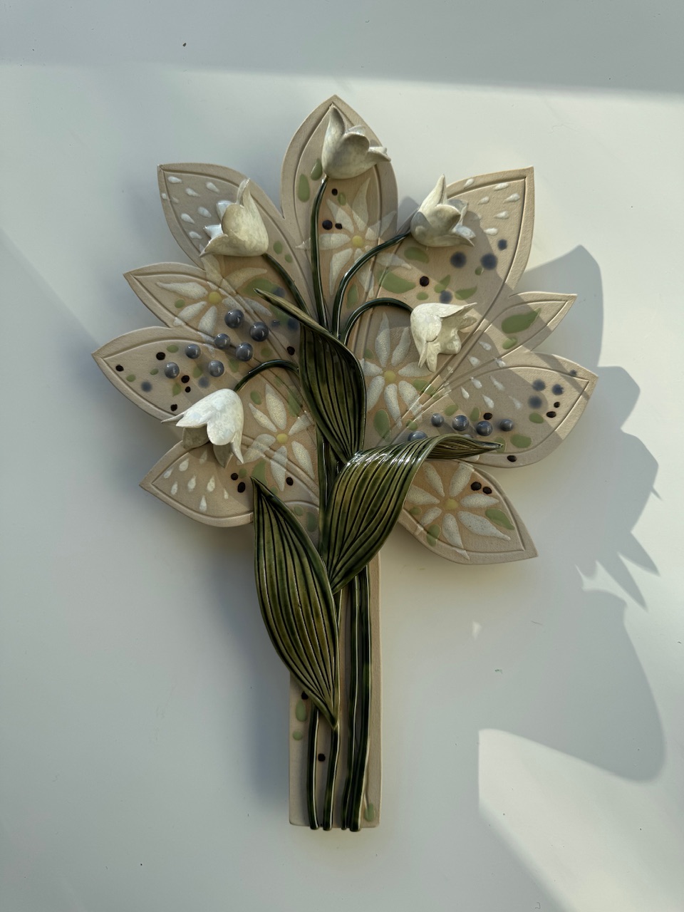 Veistos/seinäreliefi, 35 x 23cm, keramiikka, lasite.