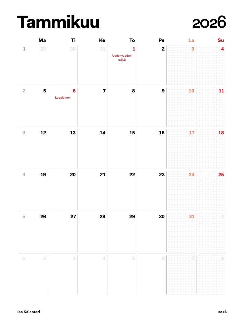 Ison Numeron vuoden 2026 kalenterin on suunnitellut palkittu kuvittaja ja graafikko Matti Pikkujämsä.