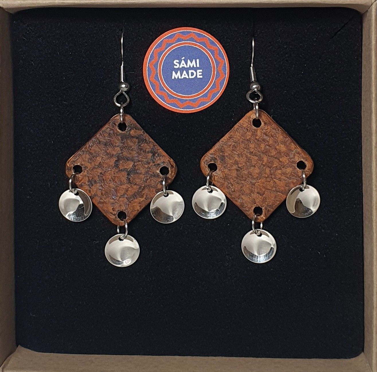 Korvakorut merilohen ja poron nahasta. Kolme aitoa hopealaukkasta. Metalliosat terästä. Toimitetaan lahjarasiassa.