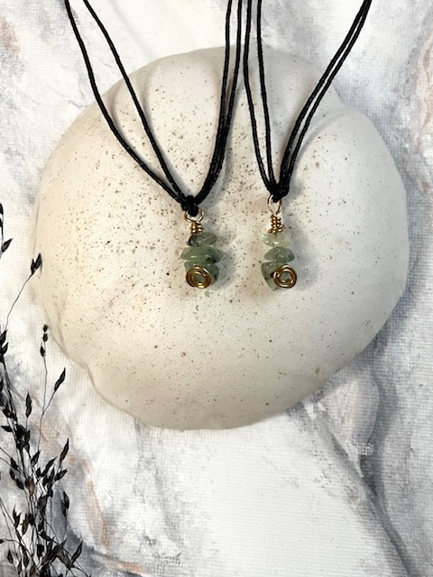 Suloinen kiviriipus nauhassa; simppelin rento, säädettävä malli puuvillanauhasta! Riipuksen metalliosa on käsin muotoiltu korumessingistä (kupari 85% sinkki 15%).