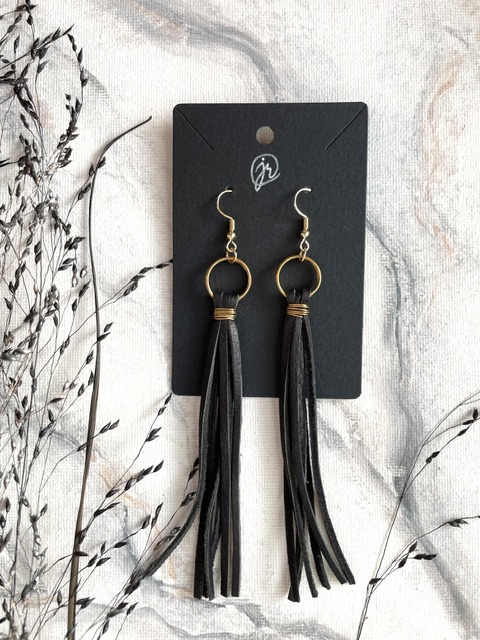 Materiaalit: isot renkaat olen muotoillut käsin messingistä, koukut ja liitosrenkaat ovat kullattua ruostumatonta kirurginterästä. Poronnahka on peräisin suomalaiselta nahkanjalostamolta kuten kaikki poronnahka mitä tuotteissani käytän.