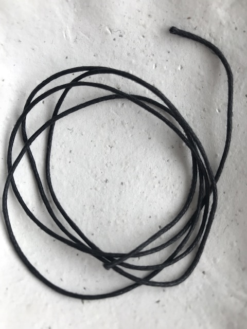 Mukana tulee musta n. 85 cm mittainen puuvillanyöri johon riipuksen voi laittaa haluamallaan tavalla. Voit myös tilata minulta poronnahkaisen nauhan tai kullatun RST-ketjun riipukselle (kategoria ”Nauhat ja ketjut”). Hyödyntää voi myös jonkin vanhan korun ketjua (silmukan halkaisija n. 0,5 cm).