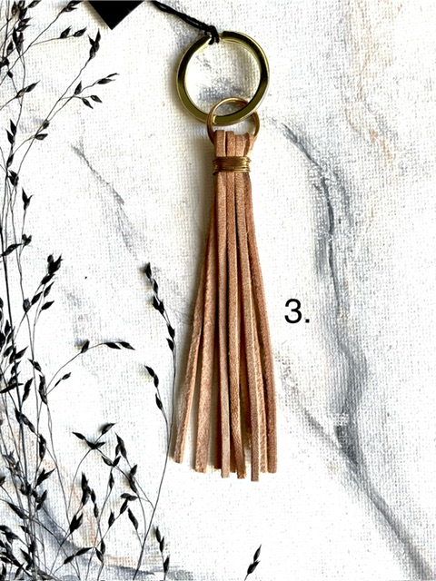 Suomalaisesta poronnahkasta käsityönä valmistettu avaimenperä jonka voit ripustaa myös esim. laukkuun tai takkiin koristeeksi (mallikuvissa monivärinen). Olen muotoillut välirenkaat käsin korumessingistä, avainrengas on kullansävyiseksi pinnoitettu valmisosa.