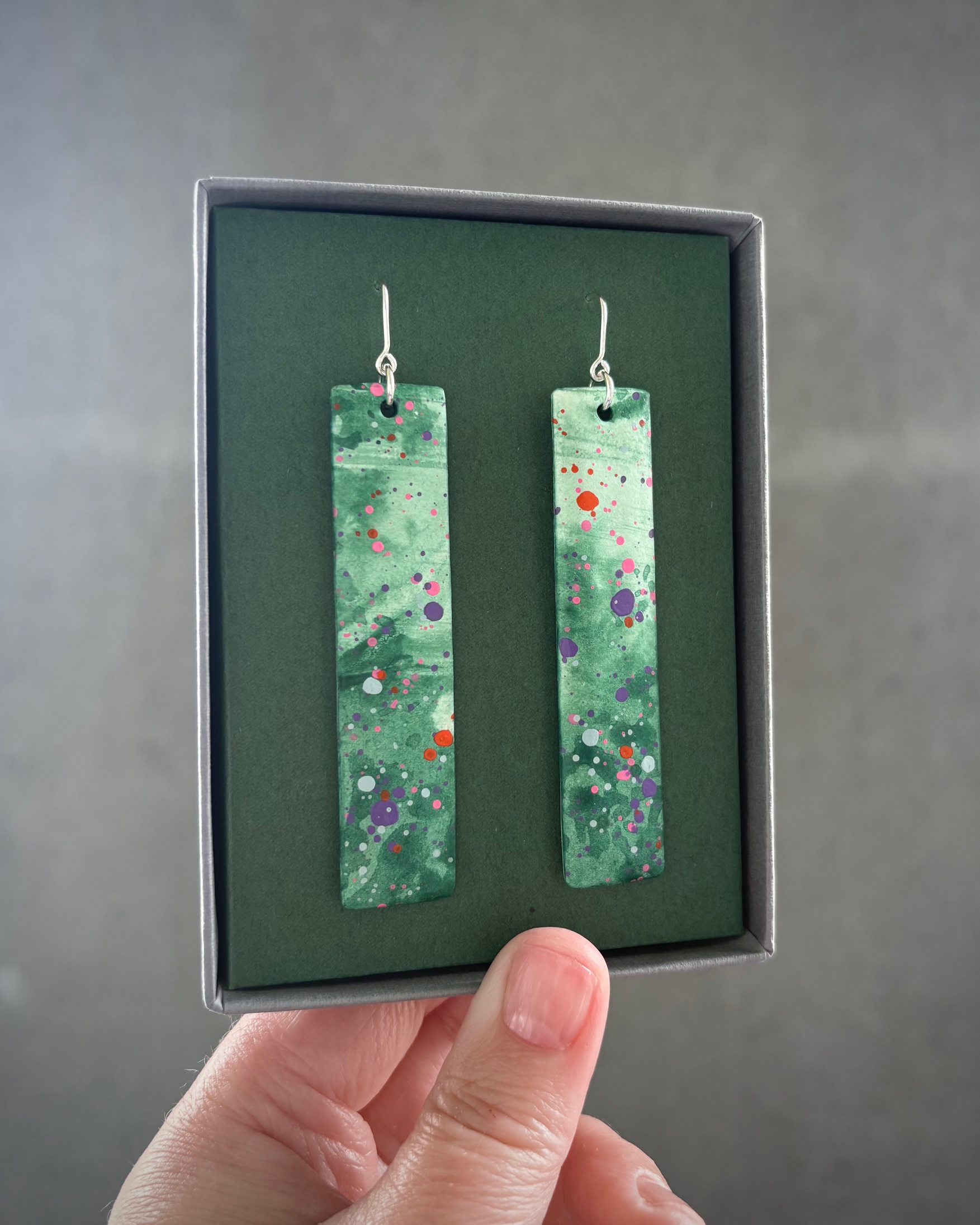 Hand-painted earrings. Handmade from Finnish birch and recycled silver 925.