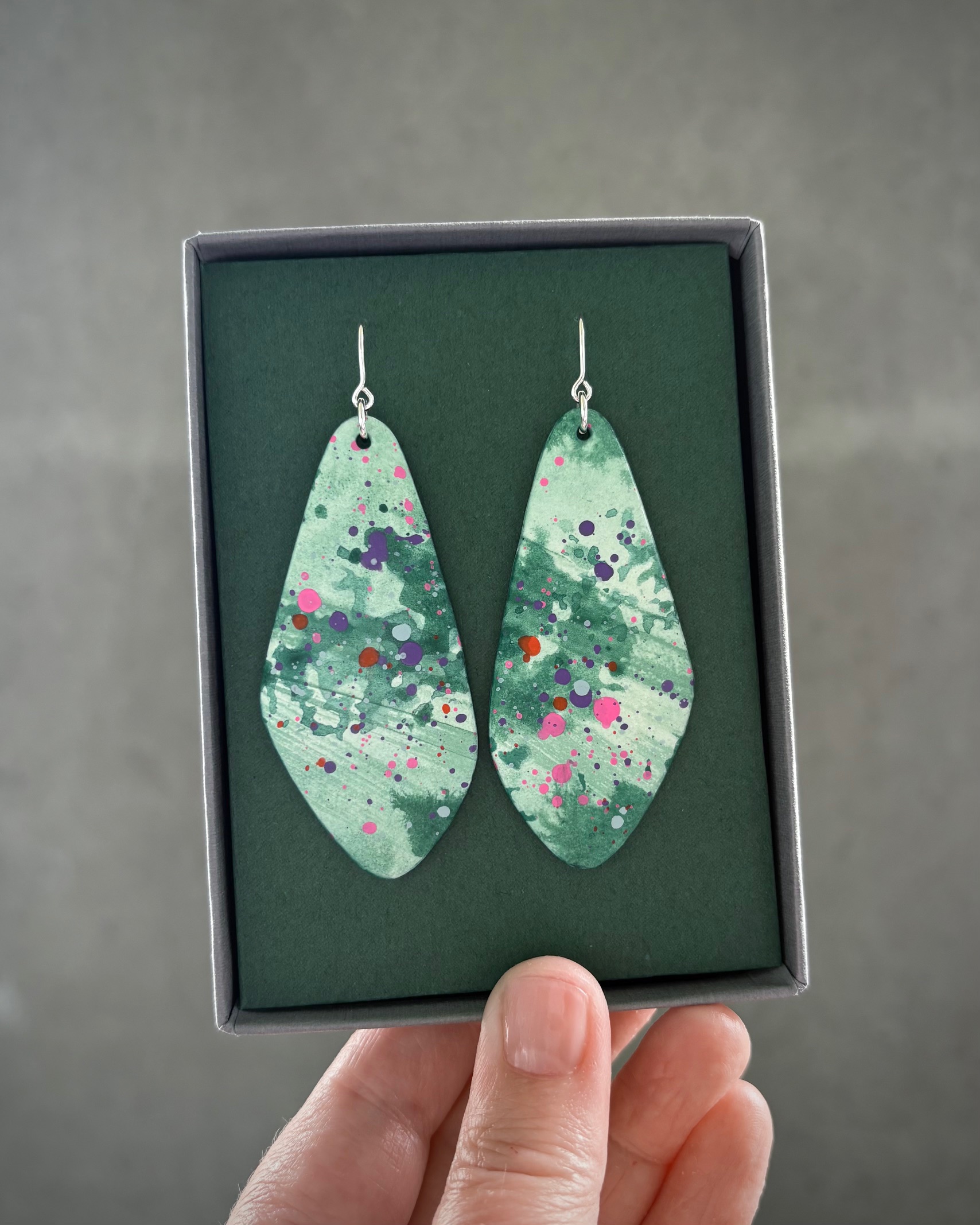 Hand-painted earrings. Handmade from Finnish birch and recycled silver 925.
