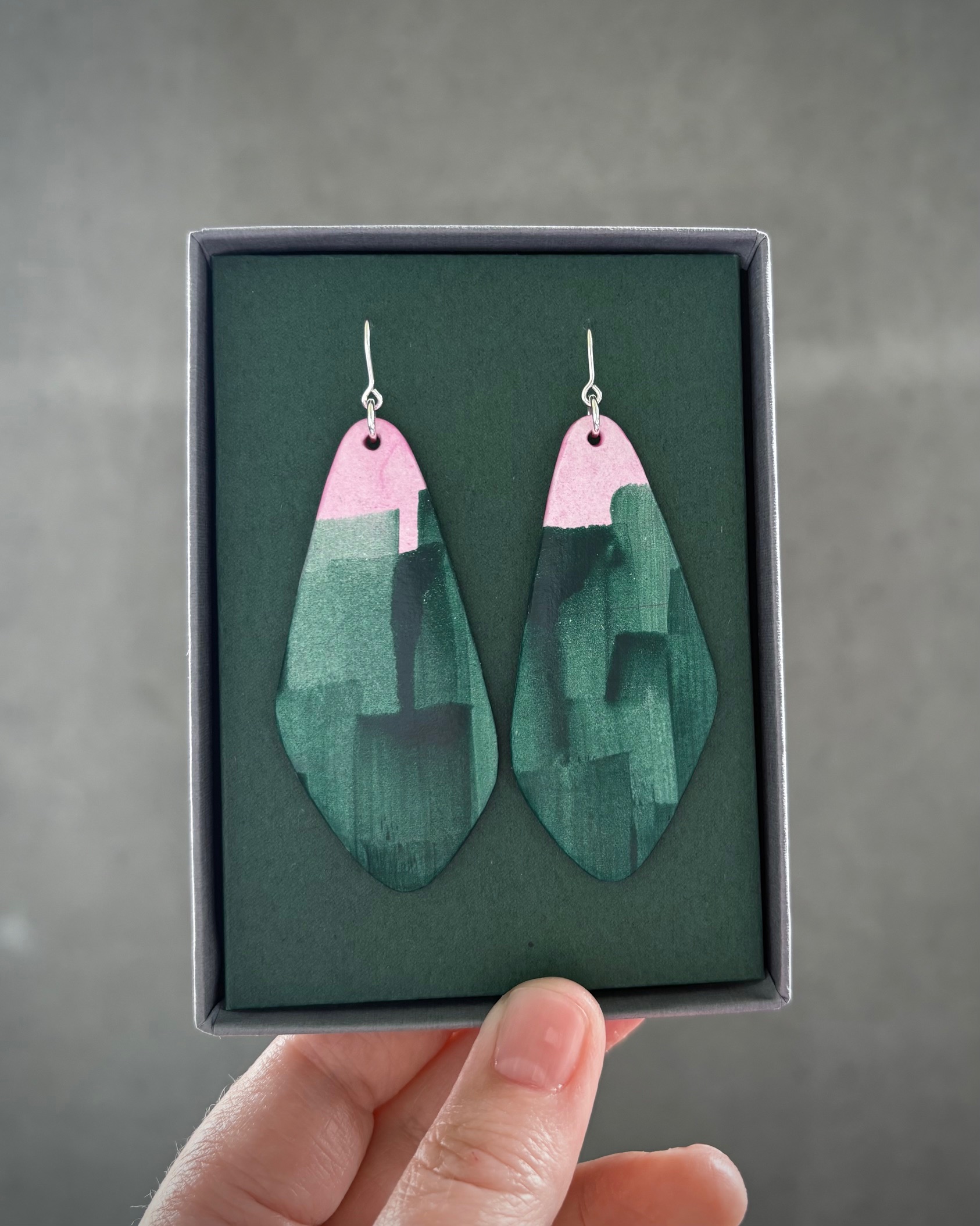 Hand-painted earrings. Handmade from Finnish birch and recycled silver 925.