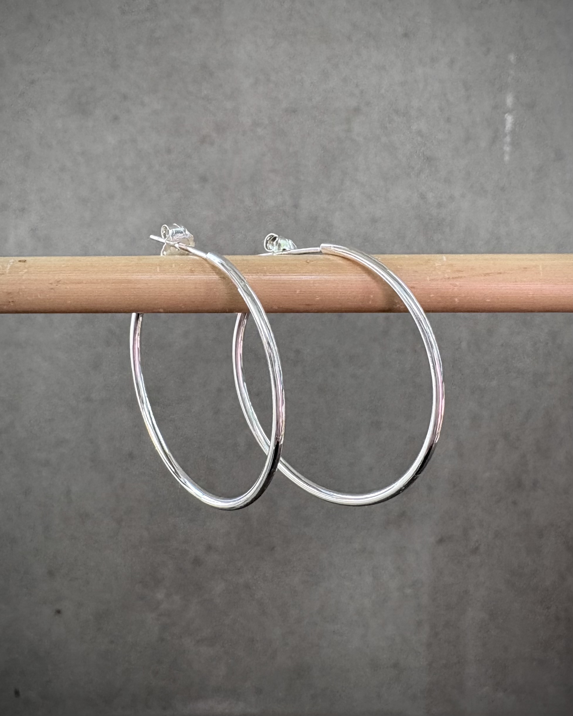 Silver hoops made from recycled silver 925. Handmade in Helsinki.