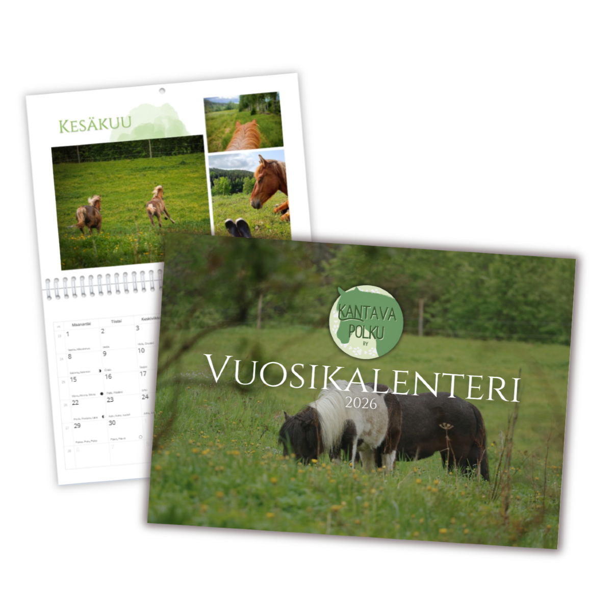 Kantava Polku ry:n vuosikalenterissa esiintyvät Kasvunpolun Hevostoimintatallin nelijalkaiset asukkaat hevosista lampaisiin. Tunnelmalliset kuvat kertovat tarinaa tallin arjesta ja vuodenaikojen muuttumisesta. Kalenteri on painettu Suomessa, ja löydät siitä helposti niin juhlapyhät kuin nimipäivätkin. Sivukoko A4, avattuna A3.