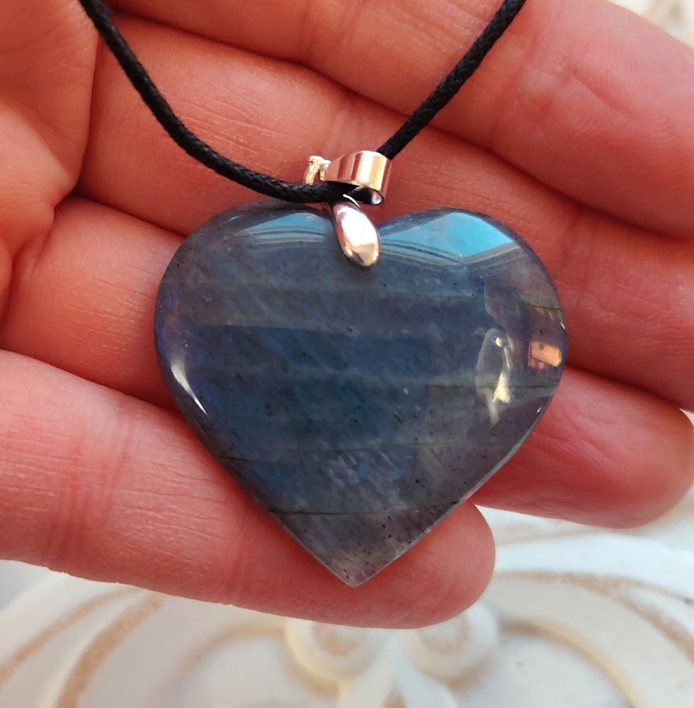 Katin info kivestä: Labradoriitti on hyvä mihin tahansa tilaisuuteen tai vuodenaikaan, mutta se on voimakas kivi silloin, kun on kyse uusista aluista ja sydämen toiveiden toteuttamisesta. Labradoriitti tuo toivoa, mahdollisuutta ja mielikuvitusta. Se sytyttää sisäisen tulen kuin pimeydestä säteilevät välähdykset kiven pinnassa. Työskentele tämän kiven kanssa, kun lähdet uuteen projektiin tai seikkailuun. Soveltuu myös energiatason nollaukseen. Labradoriitti aktivoi kolmannen silmän chakran, avaa aistit, parantaa näkökykyä ja mahdollistaa maailman näkemisen täydellisesti sellaisena kuin se ympärilläsi on. Aivan kuin Erakko taroteissa, se auttaa valaisemaan polkusi ja näkemään tien haasteiden läpi. Labradoriitti on hyvä kivi työskennellä uuden kuun aikaan eli kun asetat aikomuksia ja uusia asioita liikkeelle. Sydämiksi muotoillut kivet symboloivat rakastavaa energiaa. Chakrat: kolmas silmä.