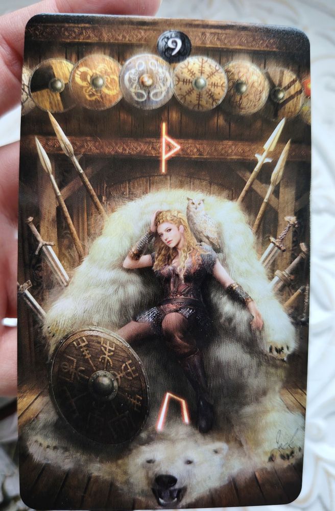 Todella upeat viikinki viboilla varustetut tarot-kortit! Pienissä arkanoissa on maljoina juomasarvet, lantteina suojakilvet, sauvoina riimusauvat ja miekat.
