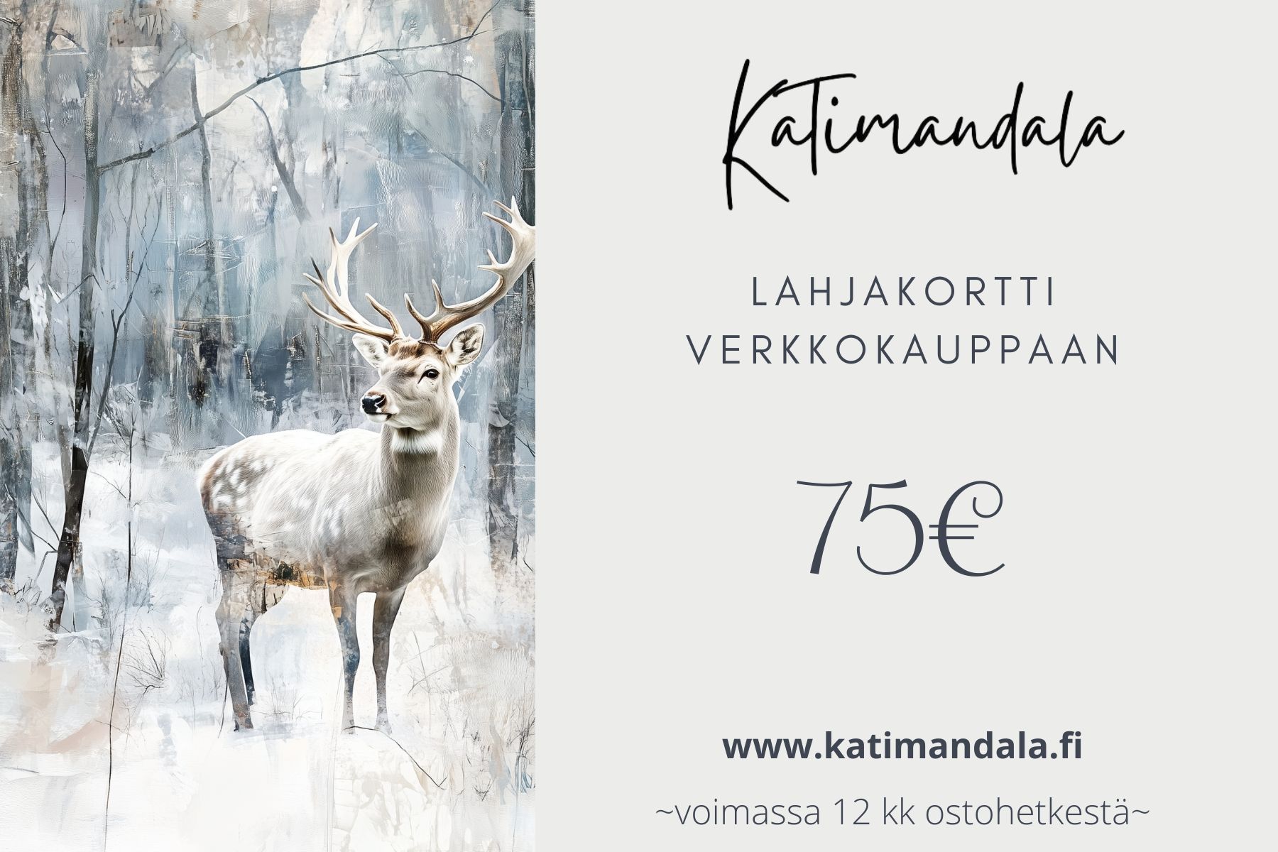 Tämä on sähköinen lahjakortti eli toimitan kuvassa näkyvän lahjakortin sähköisesti (PDF) tiedostona sähköpostiisi. Ostamaasi lahjakorttiin tulee yksilöllinen koodi (ei näy tässä kuvassa) jonka lahjansaaja voi käyttää verkkokauppatilauksen yhteydessä.