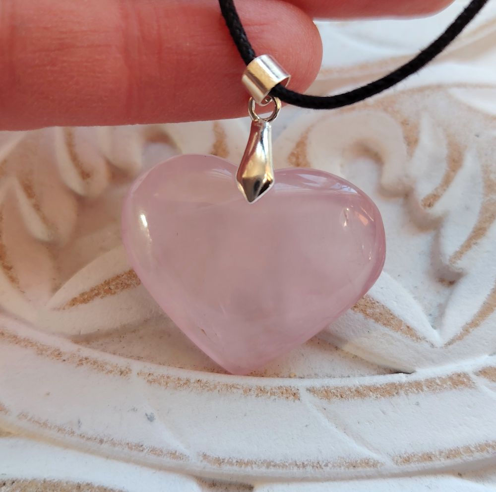 Pulleahko sydämen muotoinen kiviriipus, joka on tehty ruusukvartsista. Olen kuvannut ja numeroinut kaikki erikseen eli saat itsellesi kuvassa näkyvän korun. Tämä sydän on kooltaan 3 cm x 3 cm. Tässä mallissa kumpi puoli tahansa soveltuu etupuoleksi. Laitan riipuksen mukaan mustaa vahattua nyörinauhaa, josta voit solmia itsellesi sopivan mittaisen nauhan. Tähän koruun voi vaihtaa oman sopivan ketjun esim nahkanyörin tai hopeaketjun. Kyseessä on hyvälaatuinen kiviriipus, jonka on valmistanut käsityönä Madagaskarin artesaaniyhteisö.