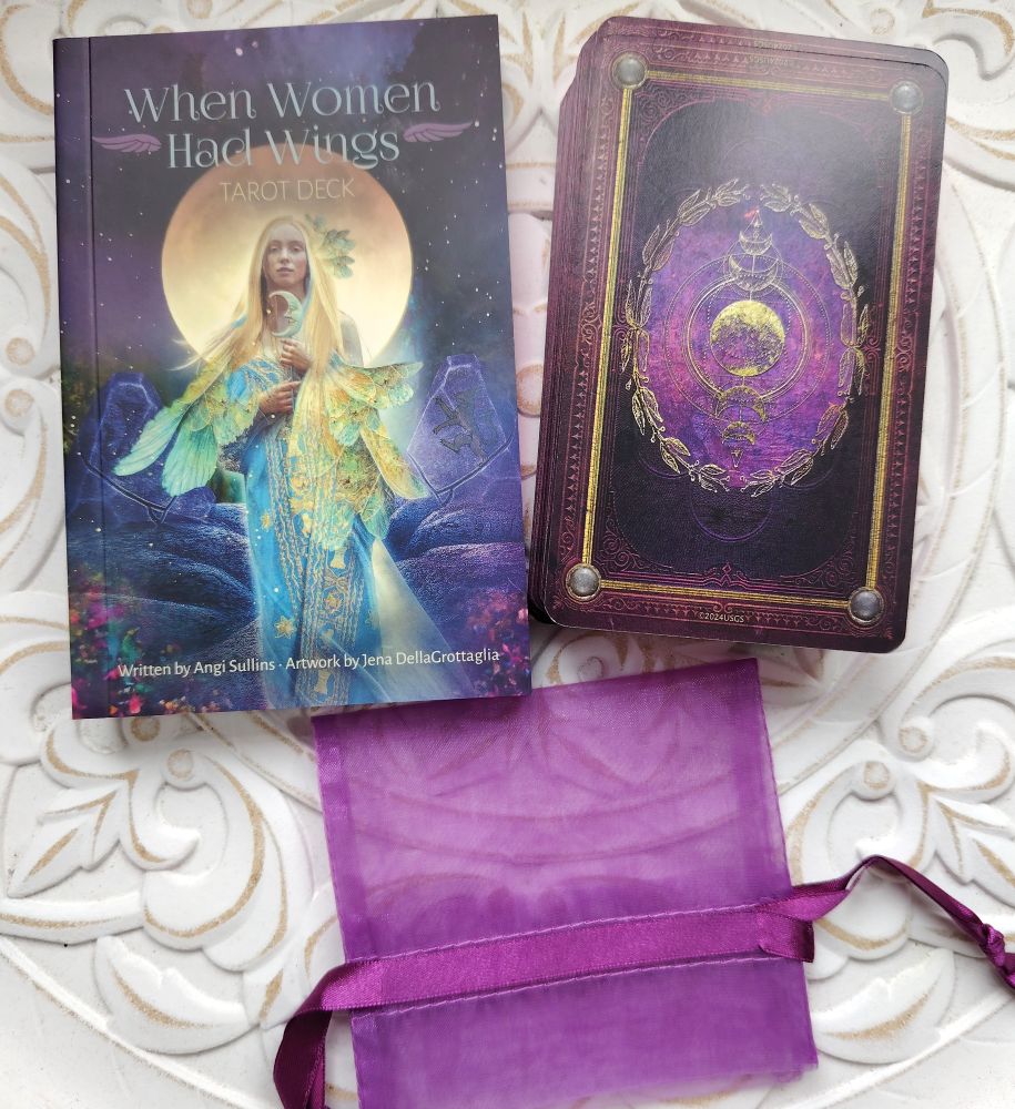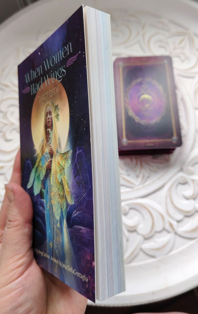 Et ehkä pysty näkemään tai koskettamaan niitä. Olet ehkä kadottanut muistosi niistä. Mutta sinulla todellakin on siivet. Sielullasi on siivet ja voit lentää päivittäin. Henki on suunniteltu liitelemään. When Women Had Wings Tarot- pakka luotiin tuomaan sinut yhteen tämän kokemuksen kanssa. Korteissa herää henkiin naisellinen viisaus, inspiroivassa oppaassa on värilliset kuvat ja myyttisiä tulkintoja tarot korteista. Korttien taide on suositun taiteilijan Jena DellaGrottaglian rehevää ja monikerroksista kollaasitaidetta