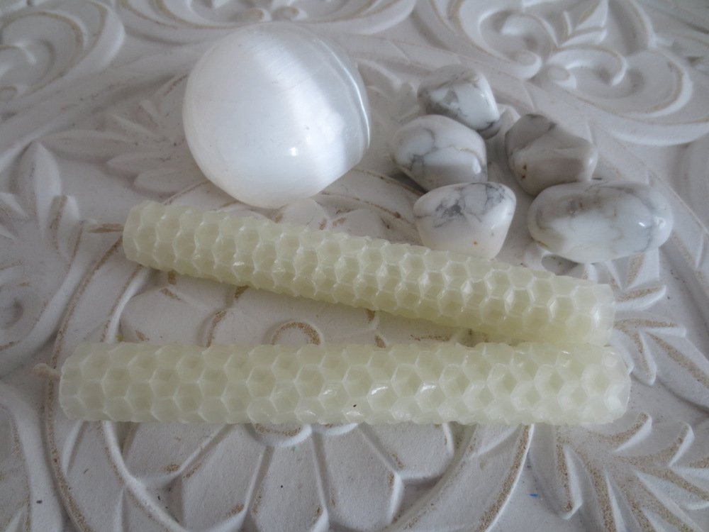 Valkoiset kynttilät: rauha, puhtaus, parantuminen, viattomuus, ennustus, pahan poisto. Valkoista kynttilää voi polttaa erityisesti puhdistusrituaaleissa, voi puhdistaa joko alueen/tilan tai jonkun tapahtuman. Valkoinen on henkisyyden väri ja sitä voi myös polttaa tuodakseen rauhaa äidille ja sikiölle raskauden aikana.