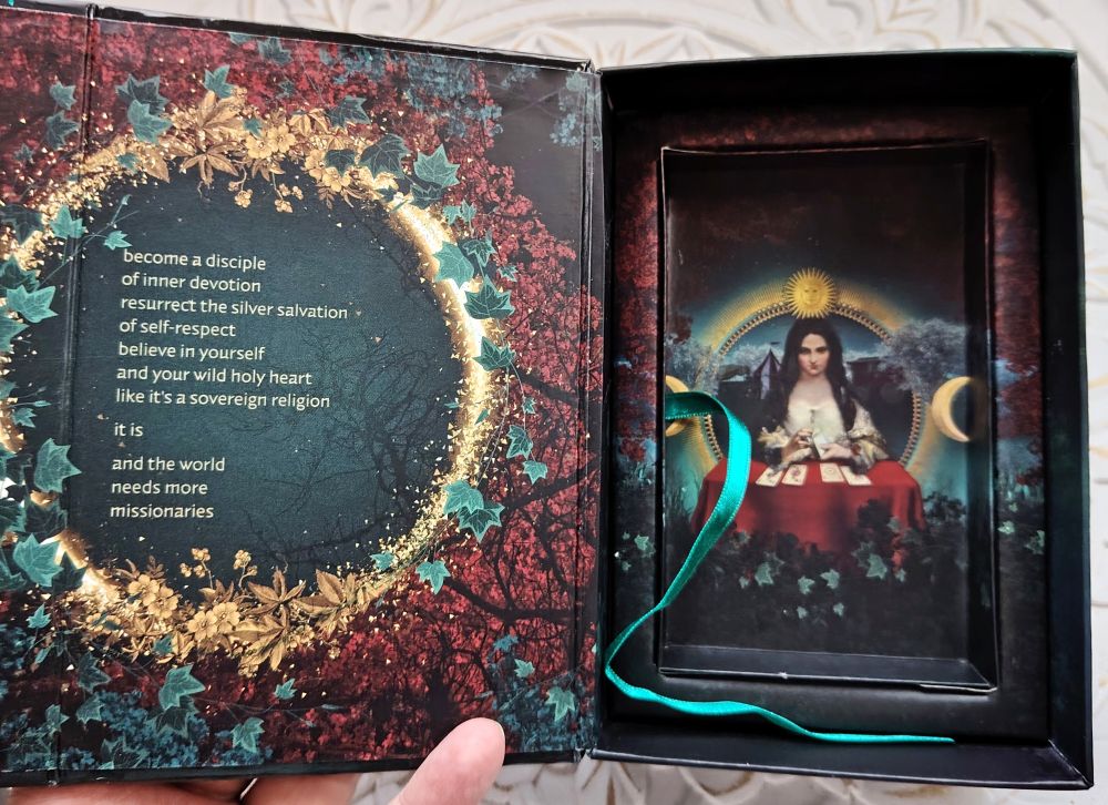 Kauniissa pakkauksessa olevat kauniit kortit. Pakkauksessa on 44 korttia ja muhkea 216 sivuinen värillinen opaskirja.