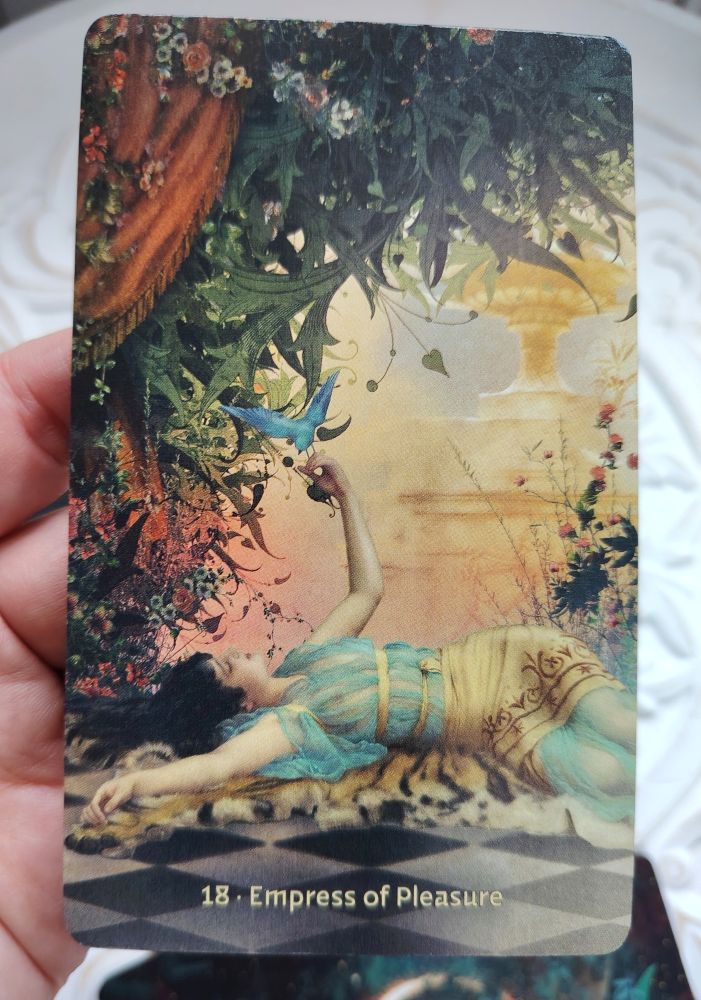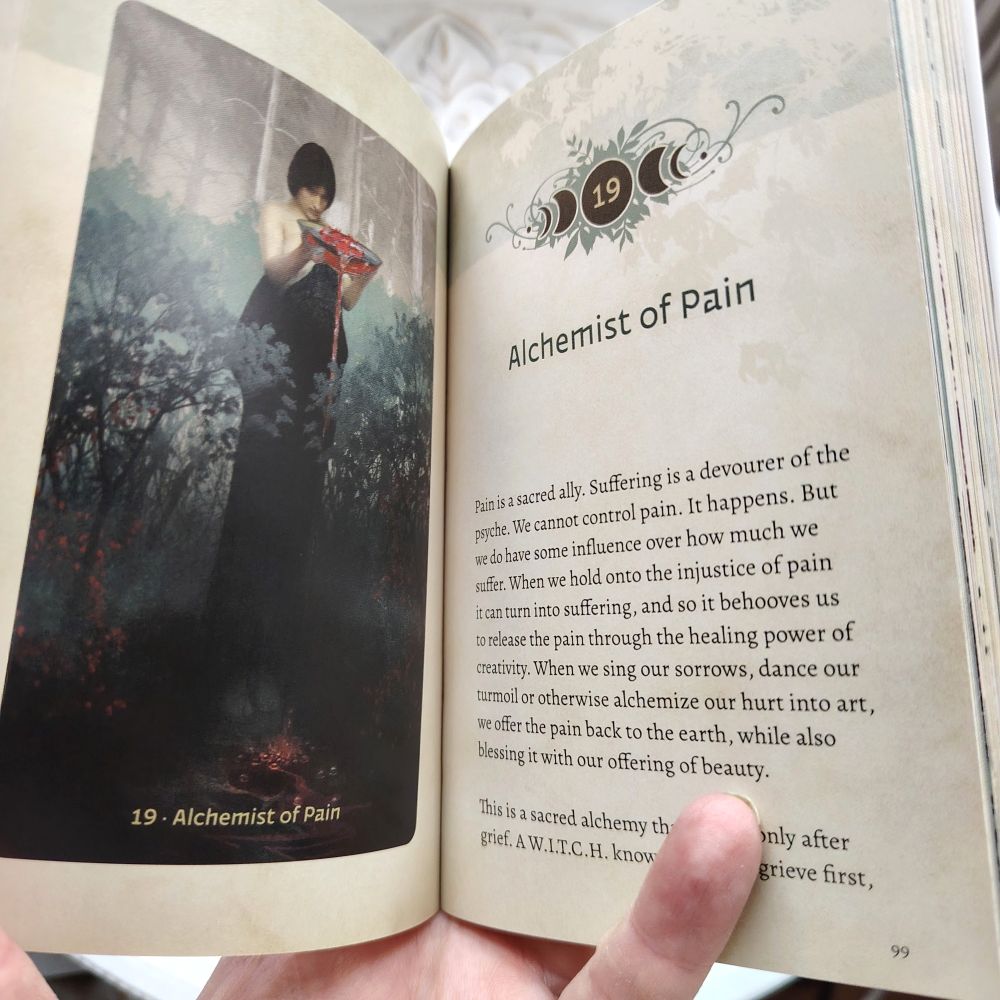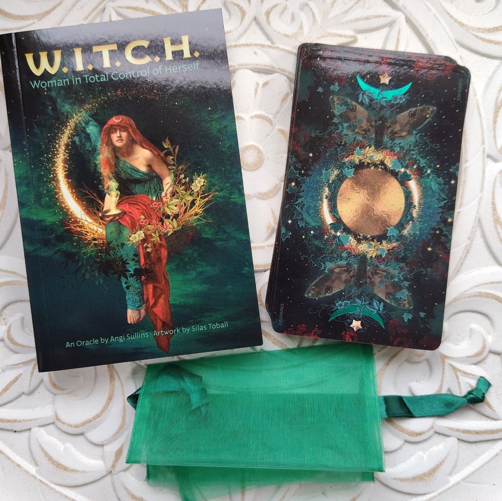 "A W.I.T.C.H. is a Woman. In. Total. Control. of Herself. She has shifted her allegiance from pleasing to pleasure, from subservient to subversive, through the very act of claiming her inner knowing as her highest authority. She's willing to abandon everyone else's expectations before she'll abandon herself. She's stopped fearing her path and started blazing it, loyal to the visions in her head and the longing of her heart. Become mistress of your own power with the wisdom of this 44-card deck with oracular guidance from the Witchery Academy, and five original poems by muse Angi Sullins. You were born sovereign, and your life is the castle you occupy. It's time to take back the throne, woman".