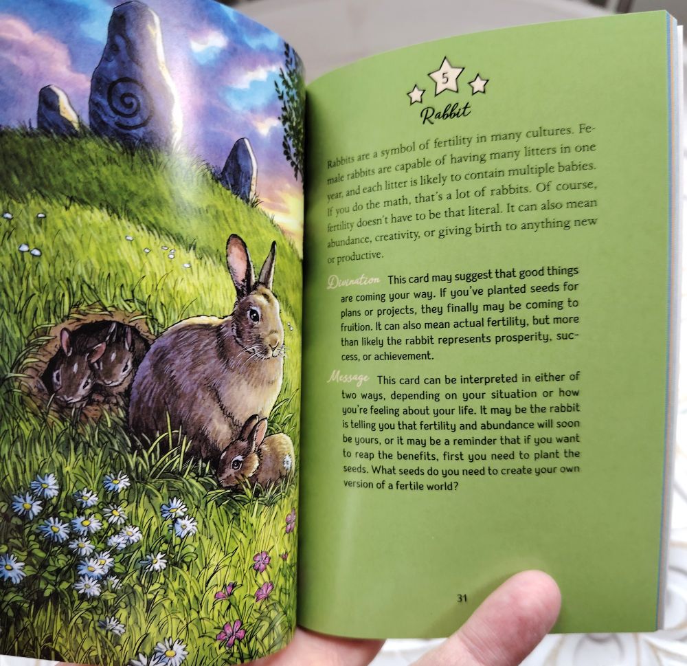Tässä pakassa on 40 tuttua olentoa – kotieläimiä, villejä ja huikeita – joilla jokaisella on ainutlaatuisia ja voimaannuttavia viestejä sinulle. Nämä viiden elementin mukaan ryhmitellyt upeat olennot antavat voimakkaita ohjeita ennustamiseen ja jokapäiväiseen elämään. Korteissa on siis ilman, veden, maan, tulen ja eetterin eläimiä.
