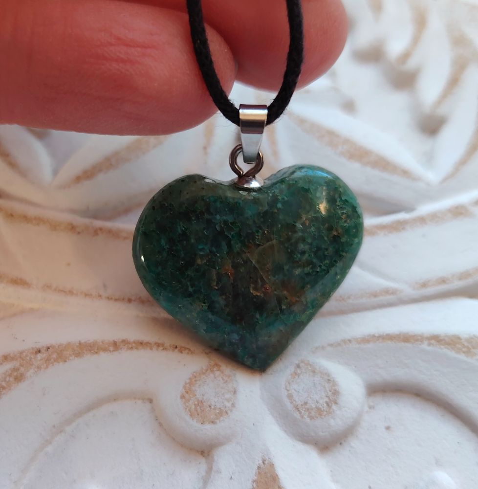Pulleahko sydämen muotoinen kiviriipus, joka on tehty krysokollasta. Olen kuvannut ja numeroinut kaikki erikseen eli saat itsellesi kuvassa näkyvän korun. Tämä sydän on pienehkö eli koko 2,4 cm x 2,4 cm. Tässä mallissa kumpi puoli tahansa soveltuu etupuoleksi. Laitan riipuksen mukaan mustaa vahattua nyörinauhaa, josta voit solmia itsellesi sopivan mittaisen nauhan. Tähän koruun voi vaihtaa oman sopivan ketjun esim nahkanyörin tai hopeaketjun. Kyseessä on hyvälaatuinen kiviriipus, jonka on valmistanut käsityönä Madagaskarin artesaaniyhteisö